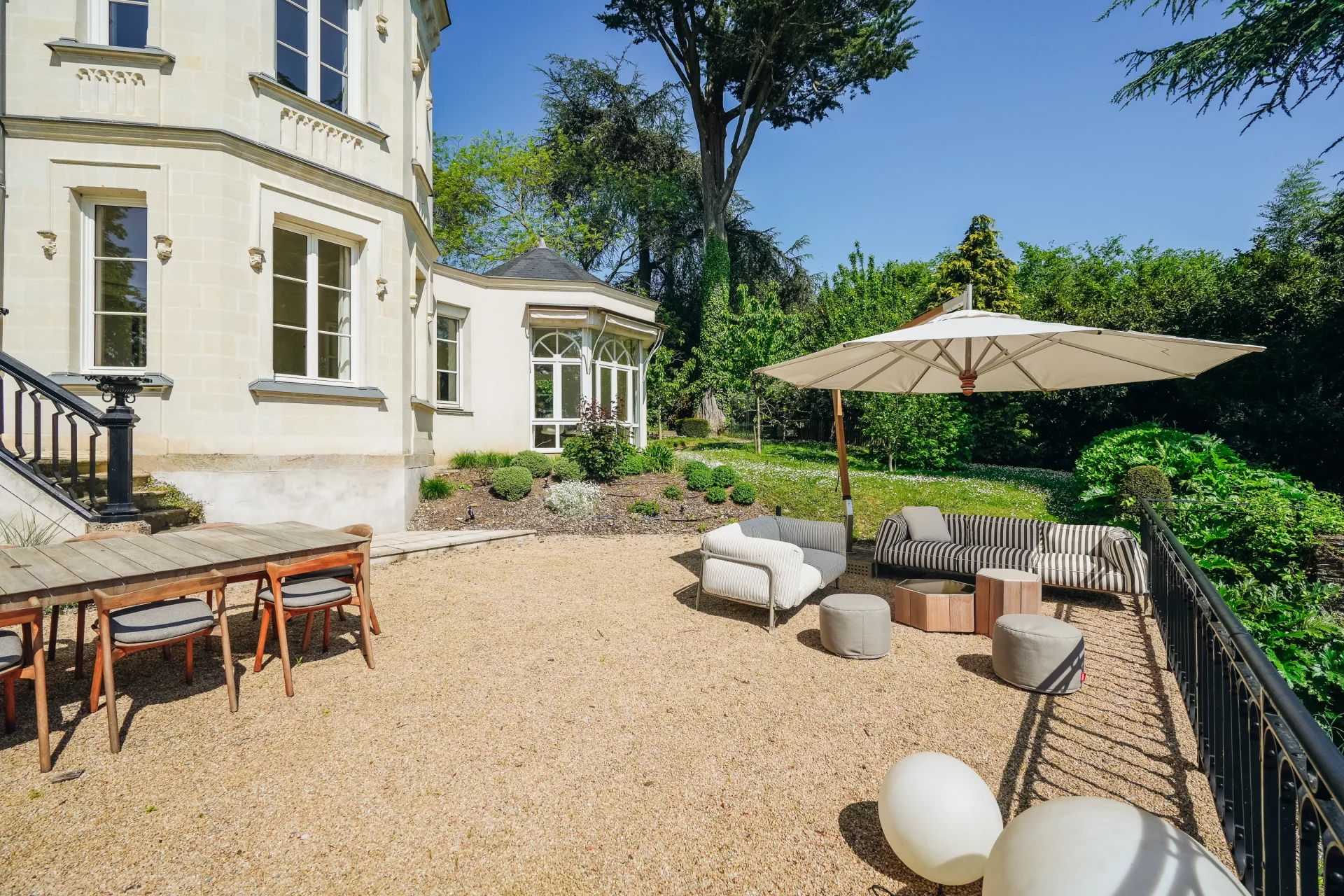 A landscaped and wooded park of nearly 6,000 square metres envelops the residence in a remarkable verdant setting. A vast terrace displays its views over the Loire, enhanced by automatic lighting and irrigation.