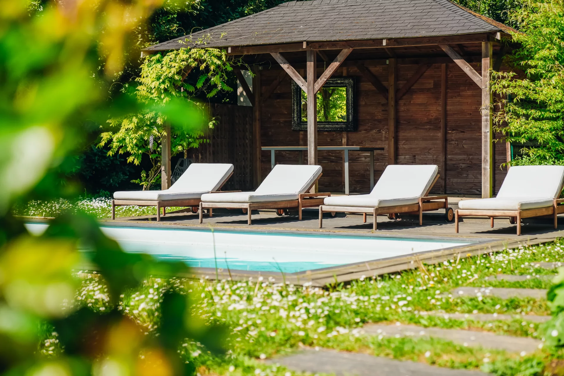 The 4 x 8 metre swimming pool, heated and treated by salt electrolysis, is equipped with a removable cover. A pool house completes this leisure area.
