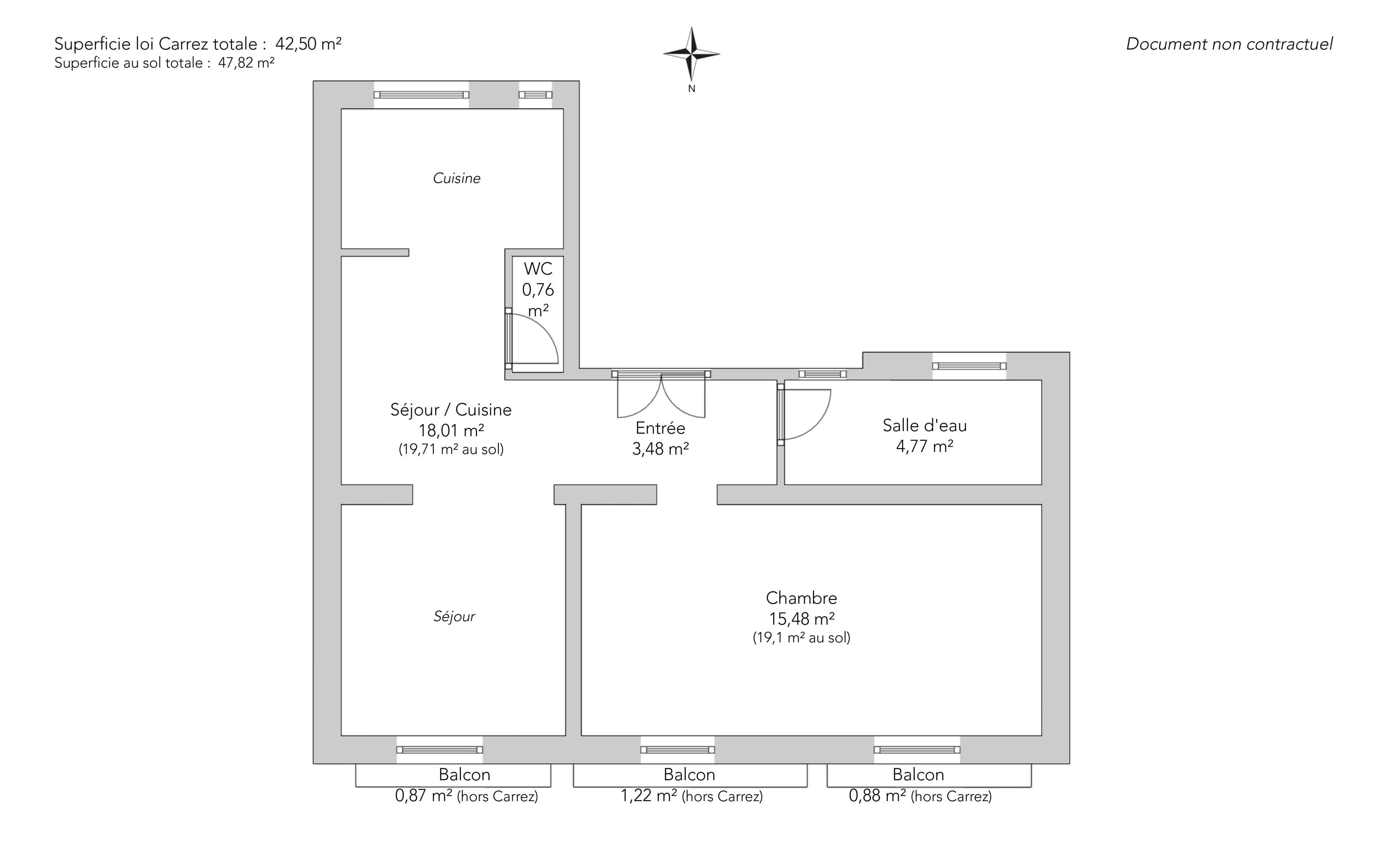 - Habitable : 457,47 Sq Ft Total : 514,73 Sq Ft