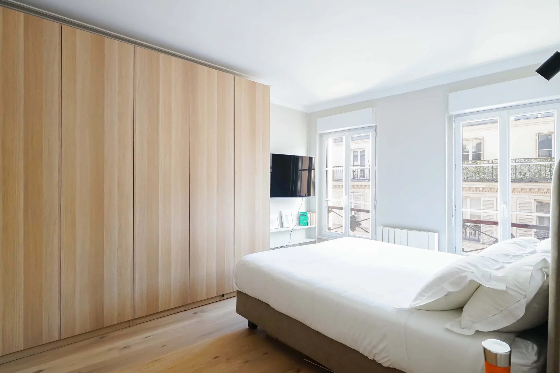 Completely renovated, this property in perfect condition comprises: an entrance hall, a magnificent spacious living/dining room with three windows and a fully-equipped open kitchen, a bedroom with built-in dressing rooms, as well as an en suite bathroom and separate toilet.