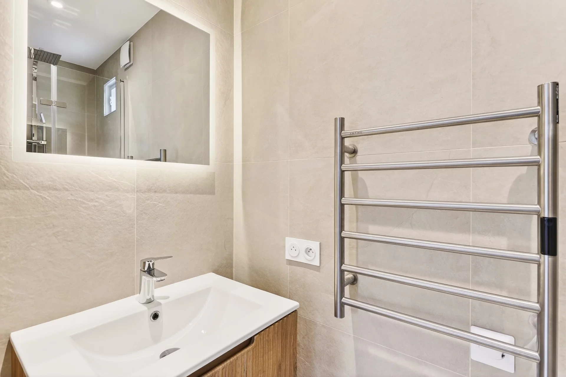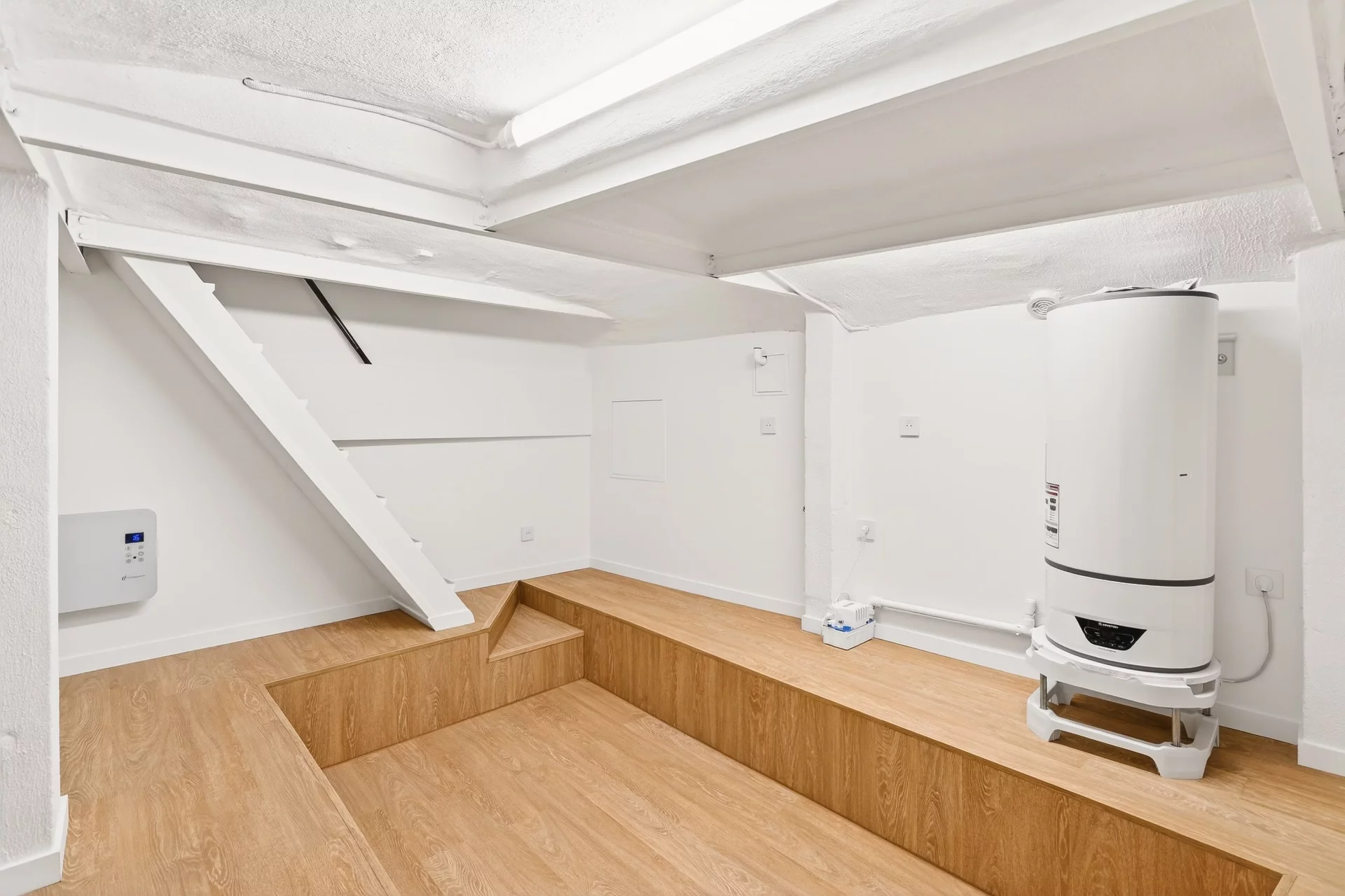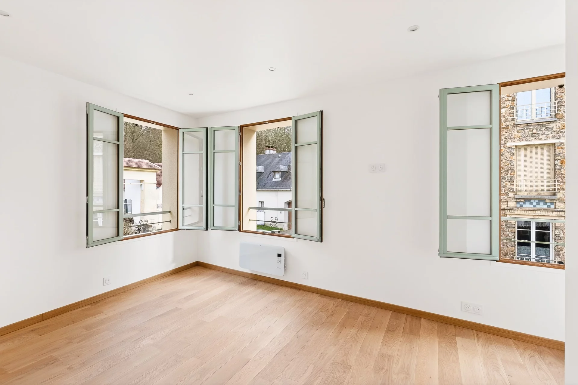 Entirely renovated with noble materials and meticulous finishes, it offers 67 sqm of living space over three levels, complemented by a 12 sqm converted basement.