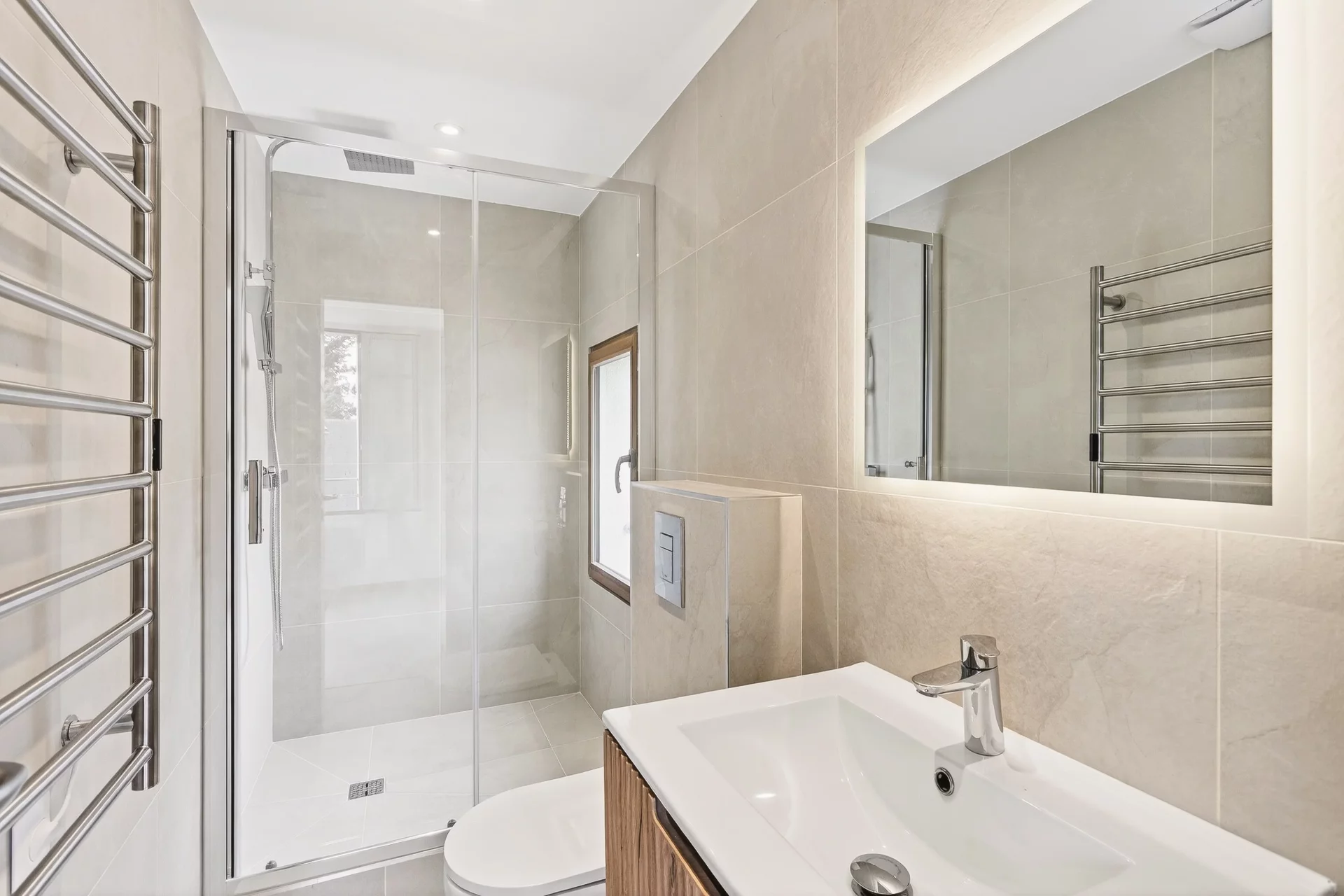 - living room with kitchen on the first floor opening onto a pleasant exterior, and two en suite bedrooms (with private shower room and toilet) on the upper floors,