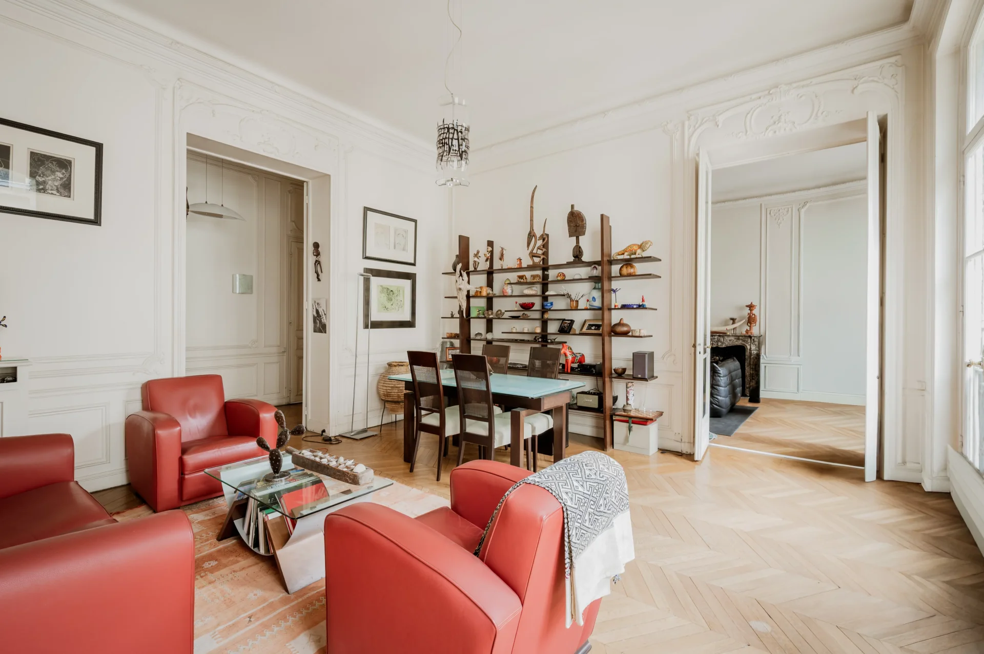 In the heart of the highly sought-after Saint-Augustin district, in the 8th arrondissement of Paris, this elegant apartment of 173.85 sqm under the Carrez law is located on the third floor with an elevator in a remarkable building, perfectly maintained. Completely quiet on the courtyard side, this property immediately appeals with its magnificent volumes, its exceptional ceiling height of 3.65 m, and the preserved charm of its old elements: parquet flooring, moldings, and fireplaces. It consists of an entrance hall leading to a dining room, a large bright living room with generous proportions, and a standalone kitchen ideally located opposite the reception rooms. An office, easily convertible into a fourth bedroom, completes this living space harmoniously. The sleeping area, separate and perfectly arranged, includes three bedrooms, a bathroom, a shower room, and a second independent toilet. Permanent caretaker. A cellar completes this property. Very close to shops and transport, this family apartment combines elegance, Old-world charm, and a particularly sought-after address.