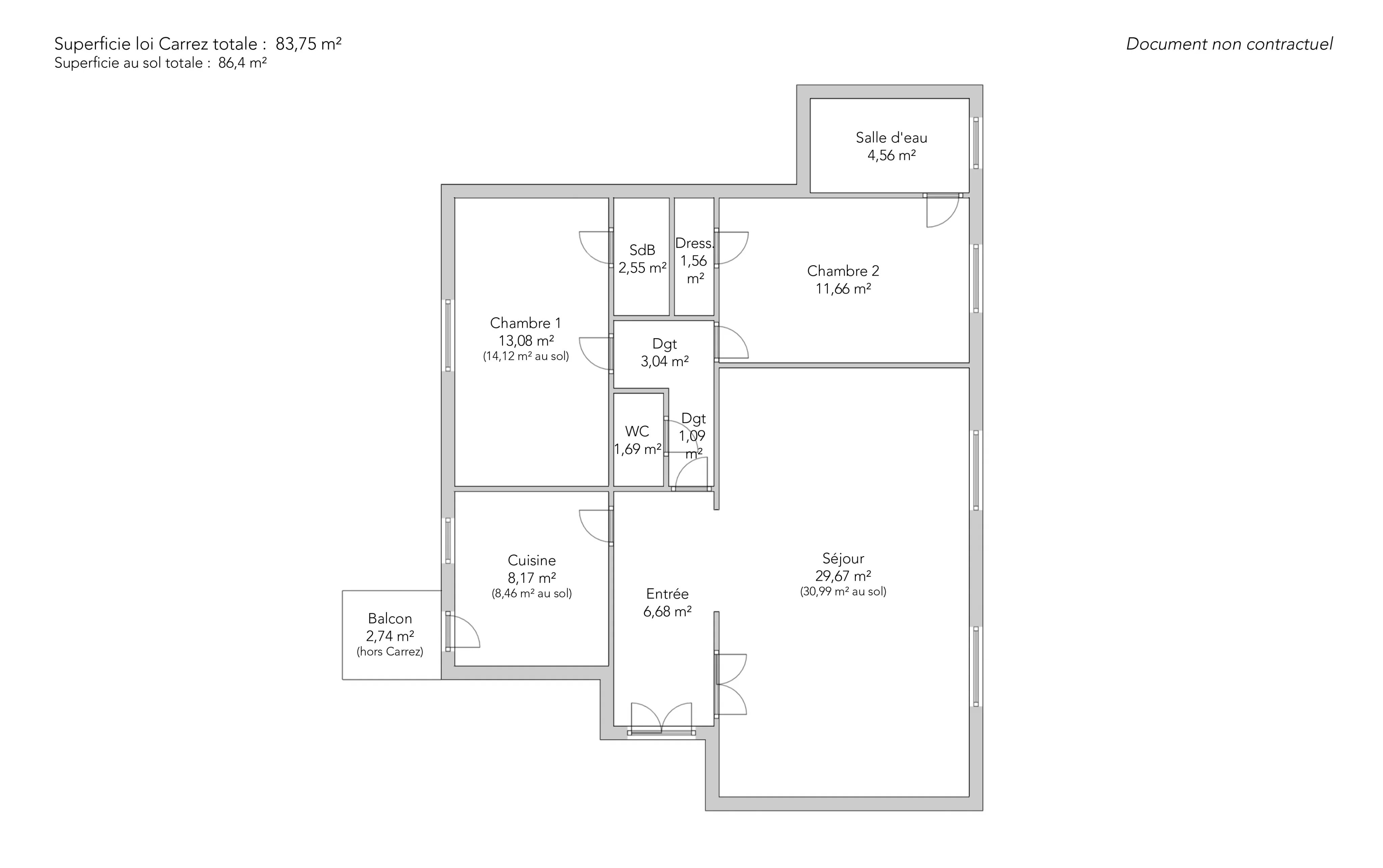 In a prestigious cut-stone building on Avenue de Malakoff, on the seventh and top floor (with elevator), a beautiful, bright, dual-aspect apartment of 83.75 sq m (Carrez Law).