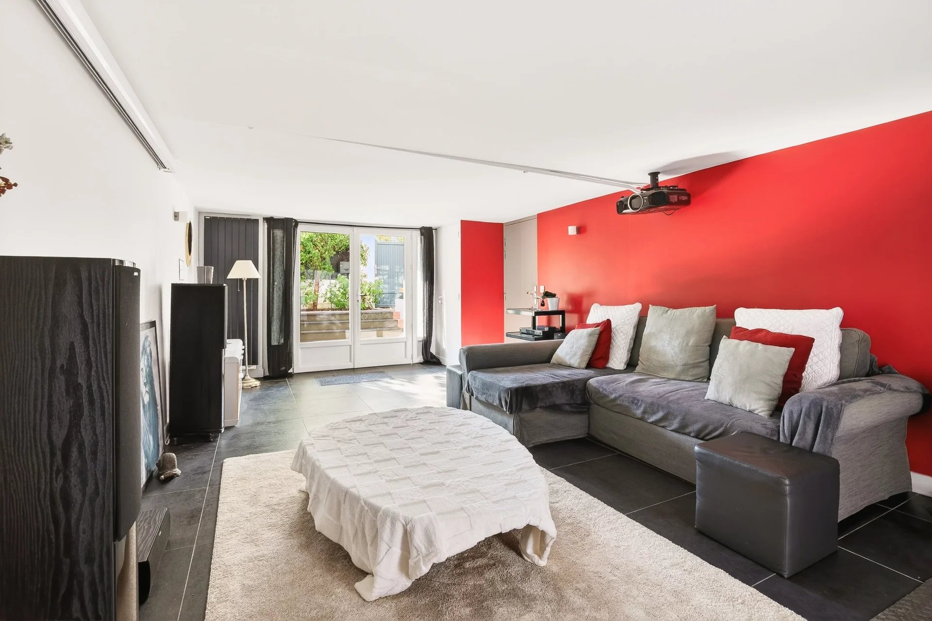 En demi-sous-sol, une family room de 25 m² avec home cinéma offre un espace dédié aux moments plus calmes.
