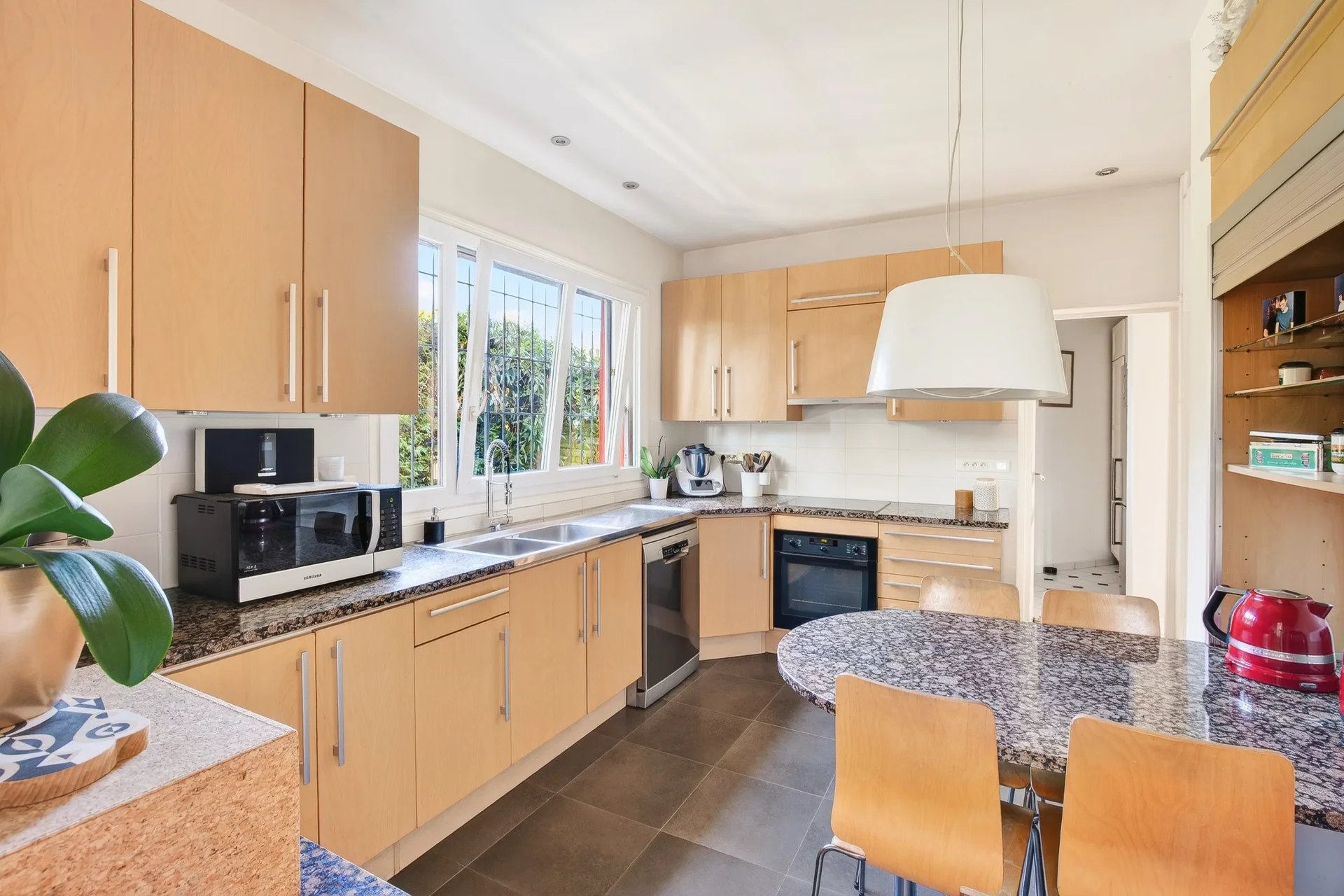 La cuisine, d’environ 12 m², dispose d’une arrière-cuisine, d’une buanderie et de nombreux rangements. Elle a été conçue pour un usage quotidien fluide et fonctionnel.