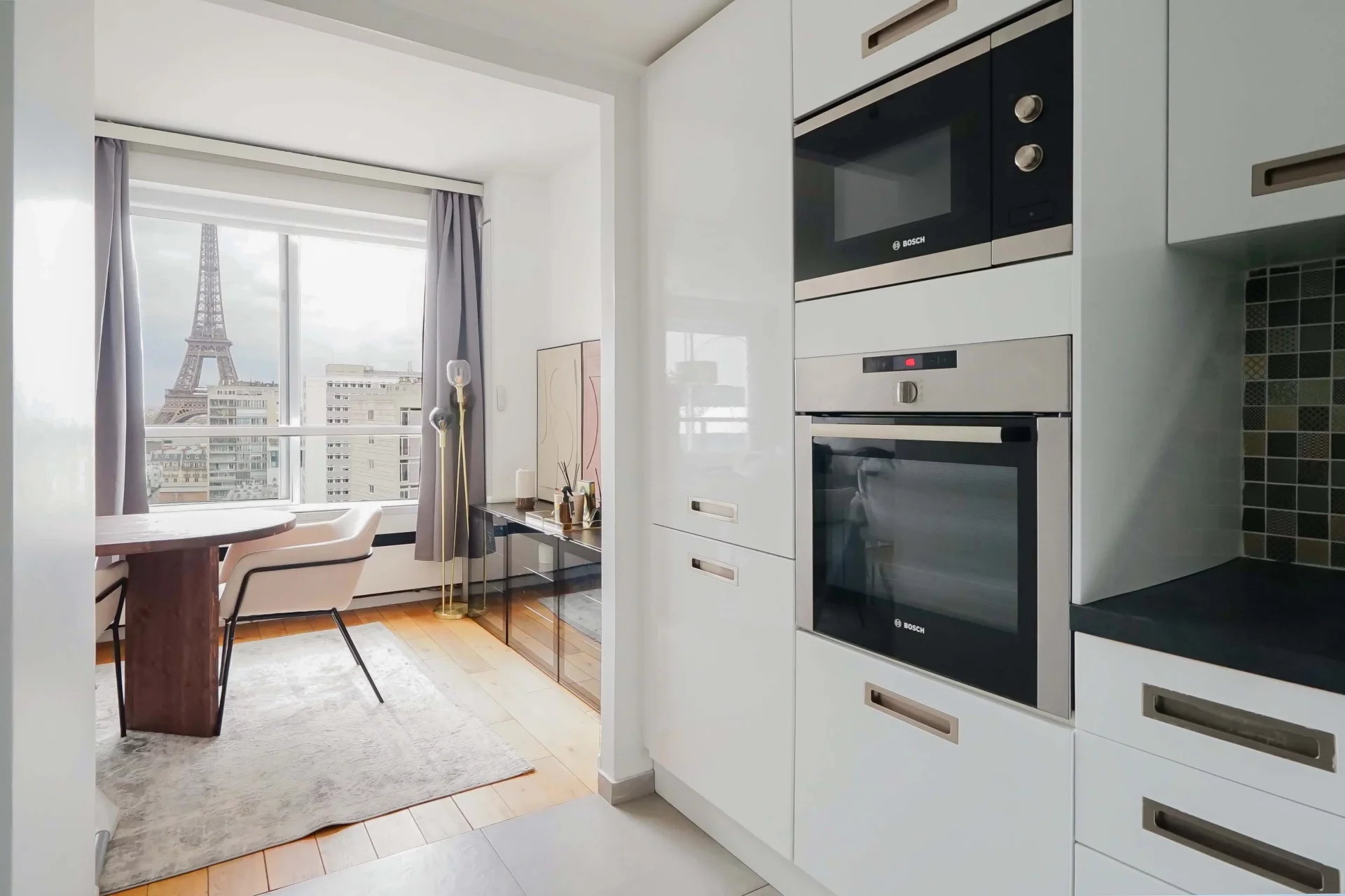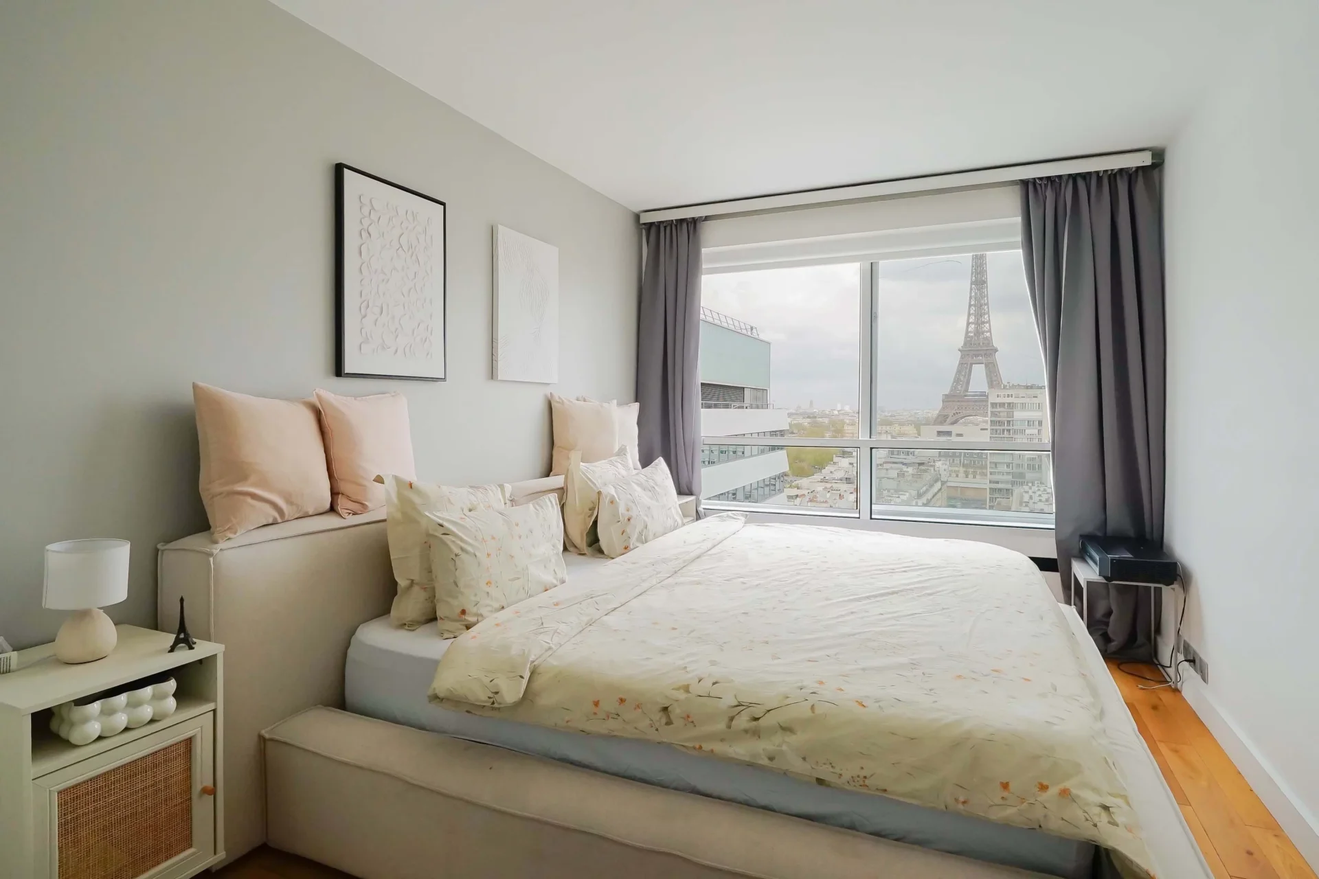 Located in the Grenelle district, within the Mars Tower, a secure residence with elevators, this 54.94sqm Carrez law apartment is on the 15th floor and offers spectacular views of the Eiffel Tower.
