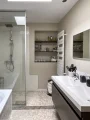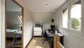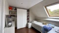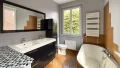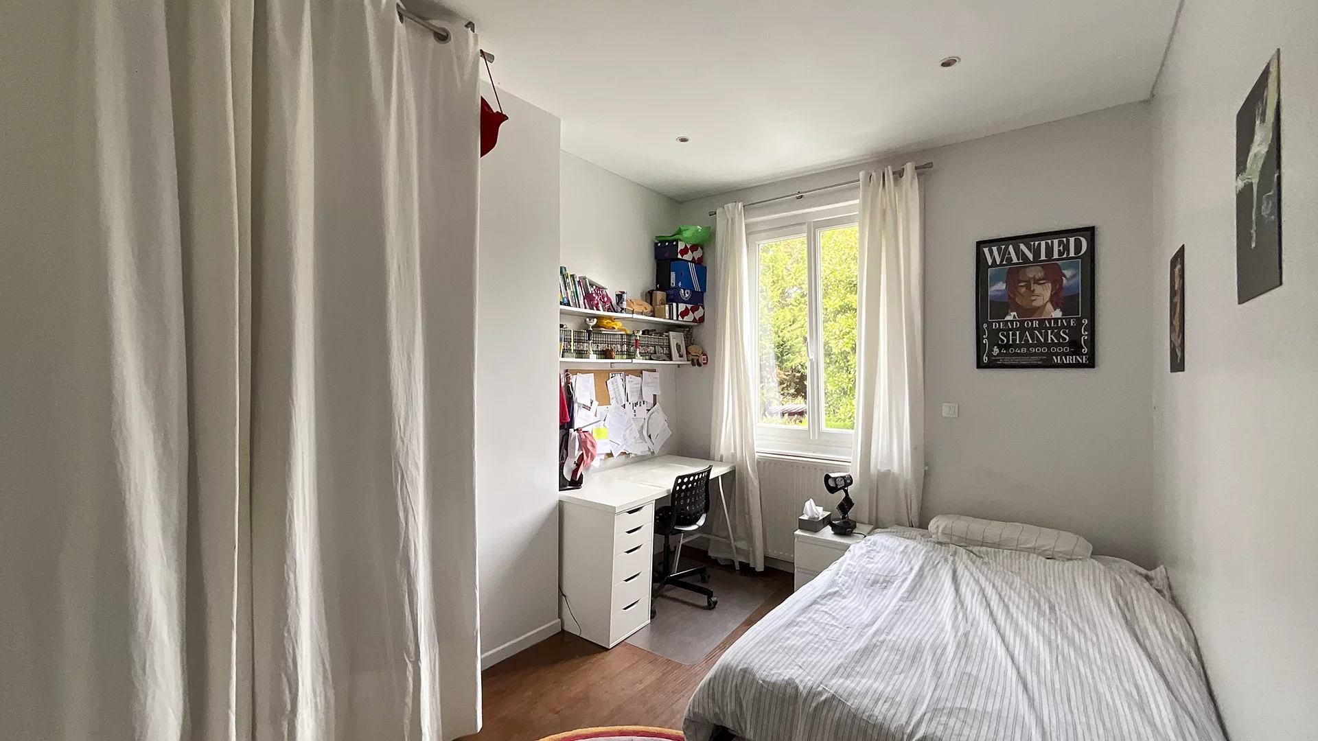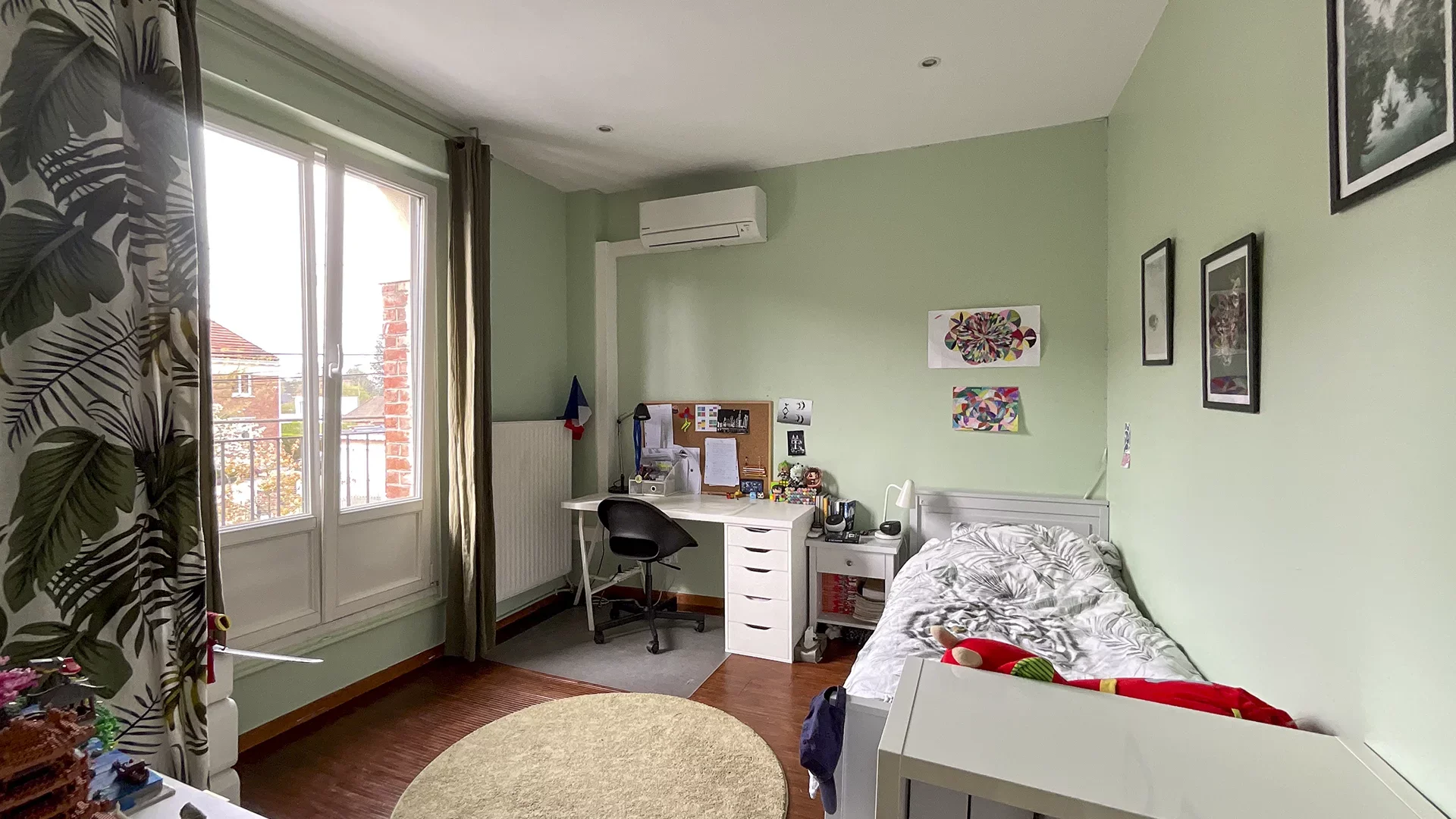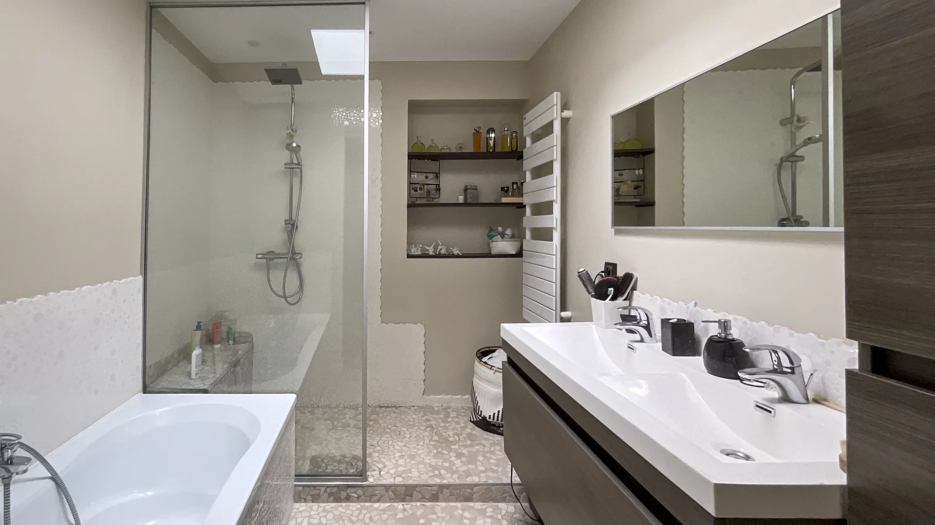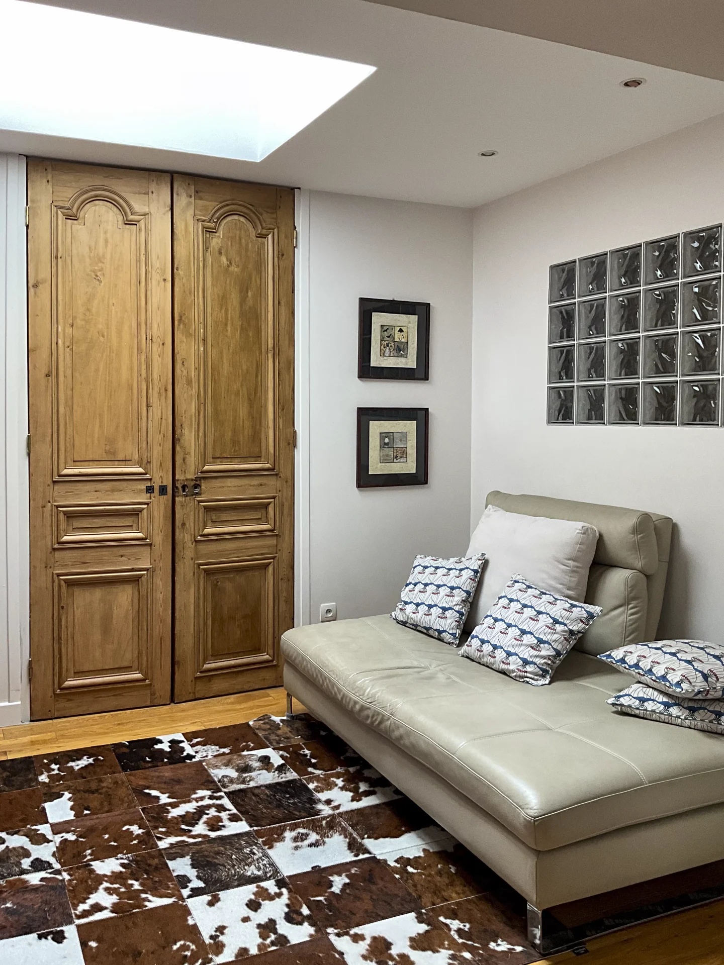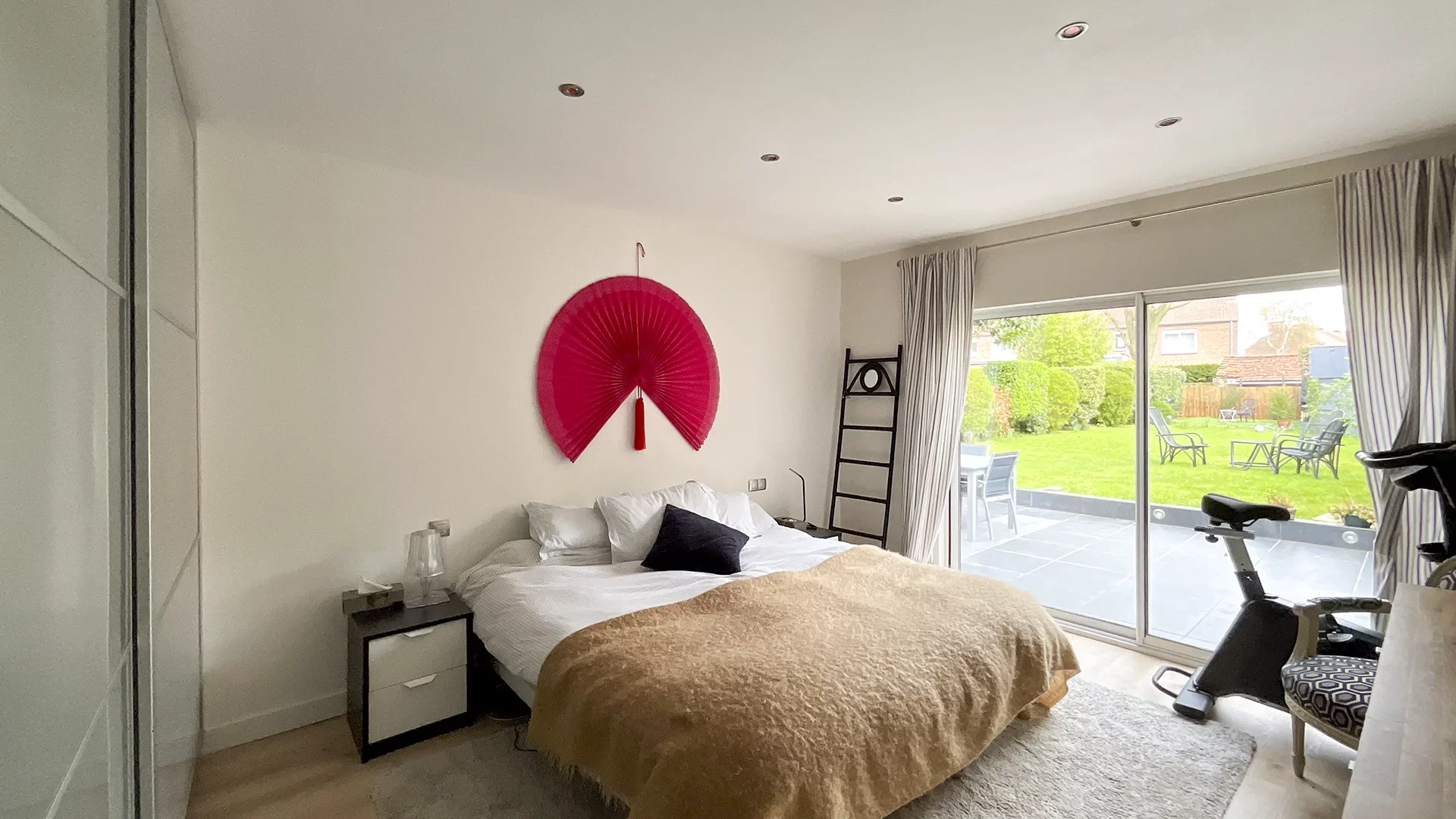 Also on the ground floor, a parental area offers a large bedroom with storage and wide openings onto the garden, as well as an adjoining bathroom.