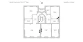 The entrance leads to a large living room, a kitchen, and a sleeping area consisting of several bedrooms, bathrooms, and plenty of storage.