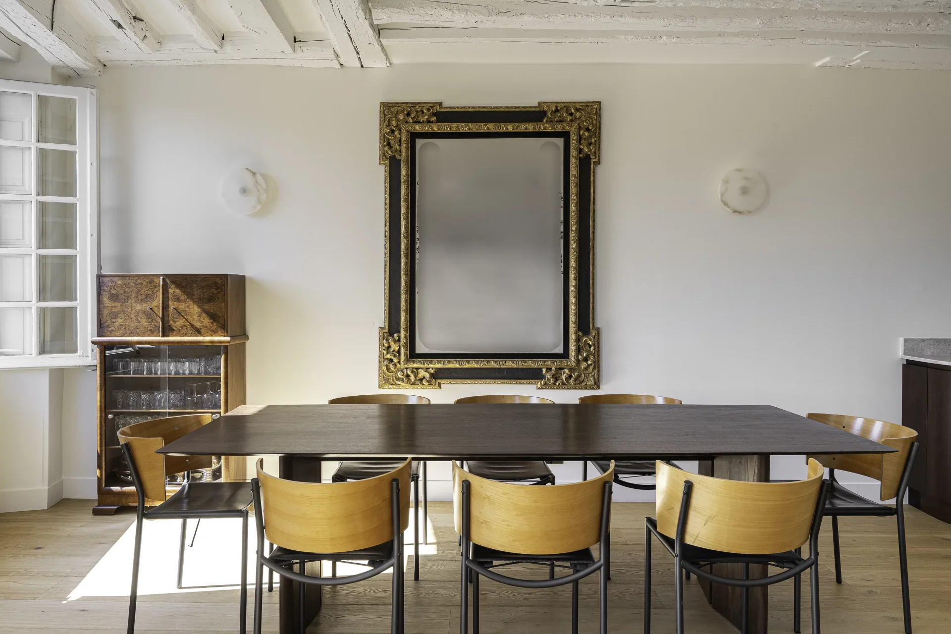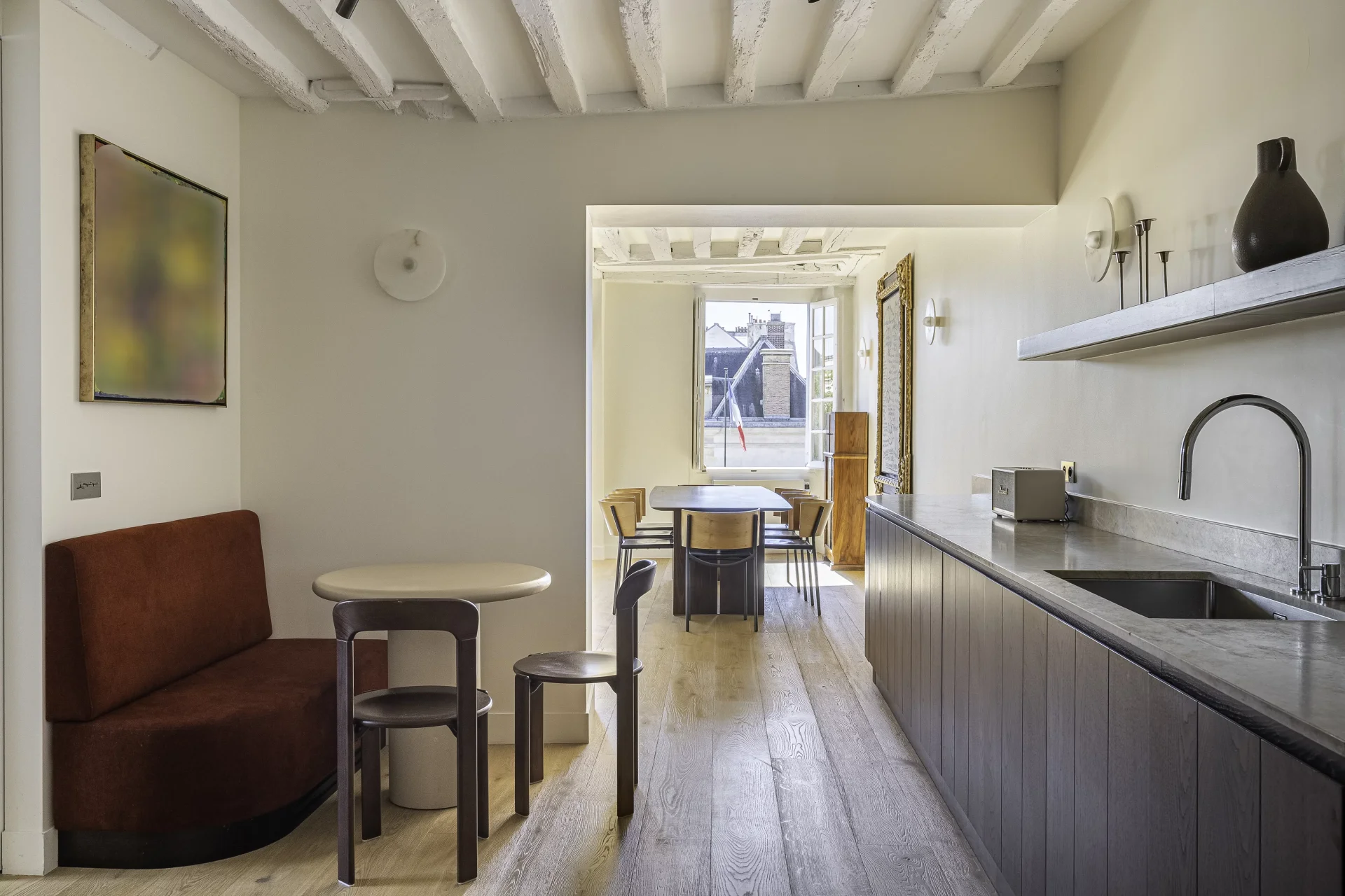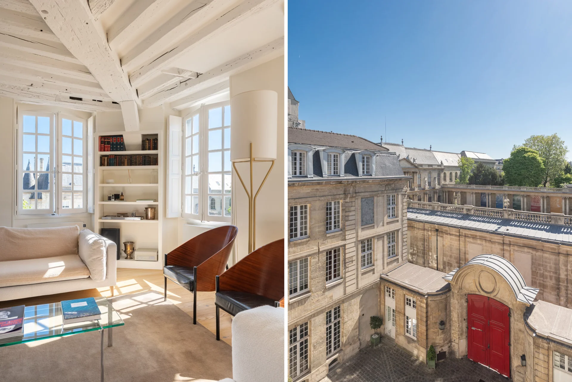 Rue des Archives, within the former Couvent de la Merci, of which several elements are listed as historic monuments, now organized as a Townhouse, on the third floor with elevator, magnificent corner apartment with exceptional views of 140sqm.
