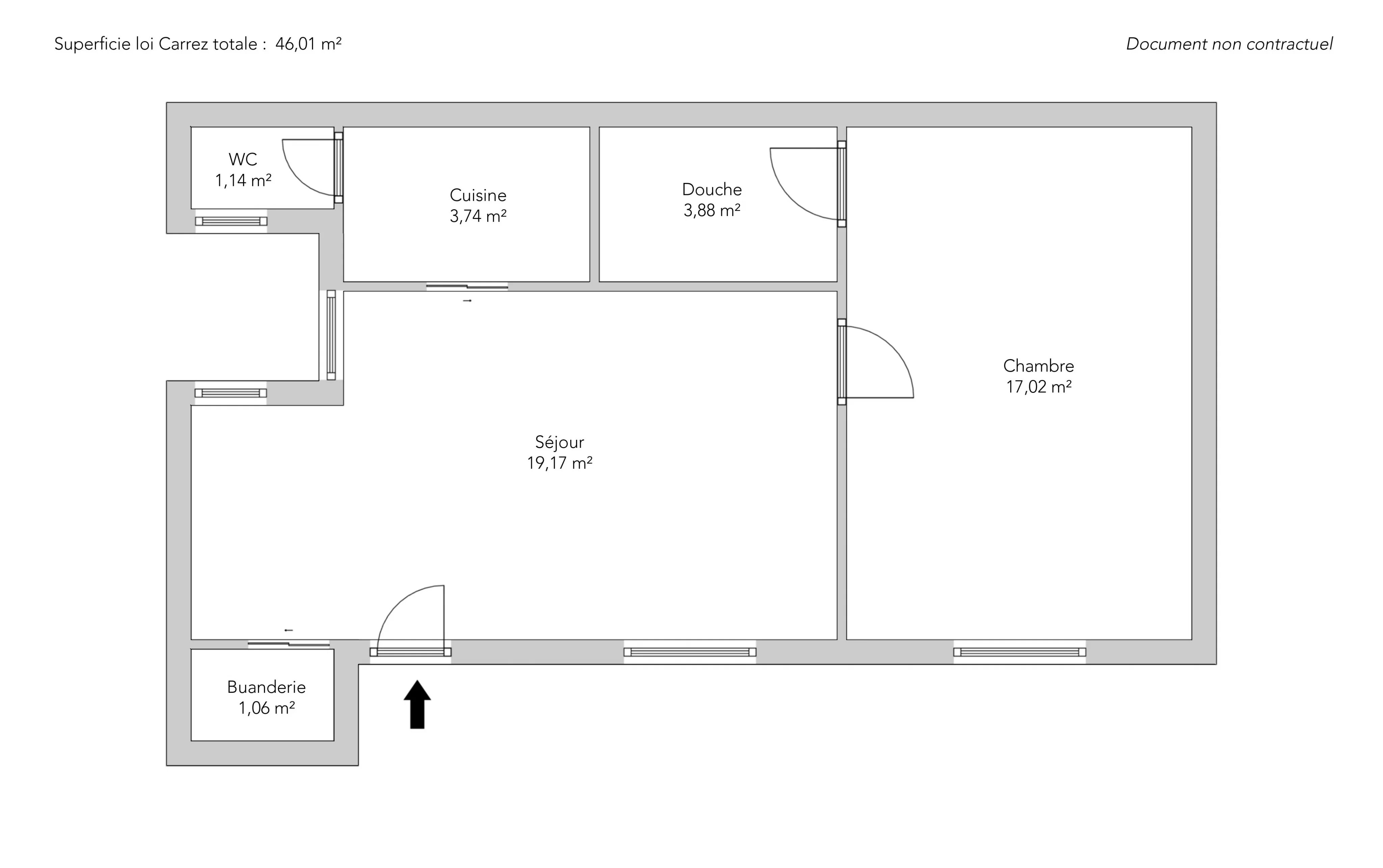 Rue du Bac, between Rue de Grenelle and Boulevard Saint-Germain, magnificent 46.01sqm Carrez law apartment completely renovated, located on the third floor with elevator in a beautiful Parisian building.