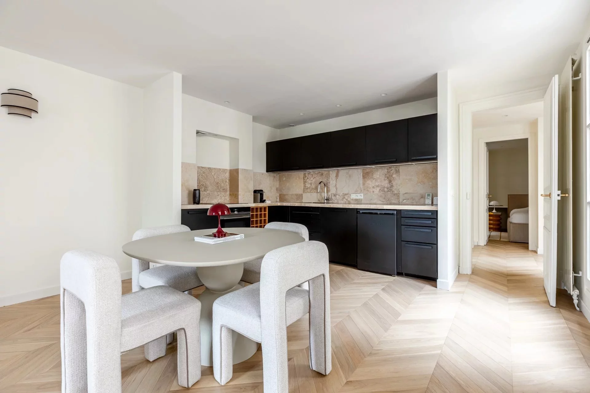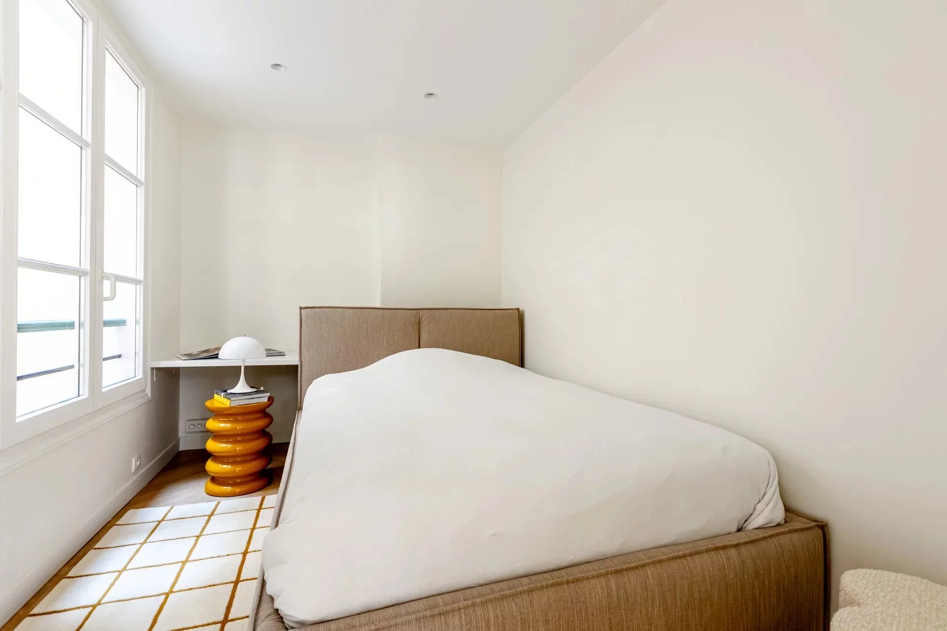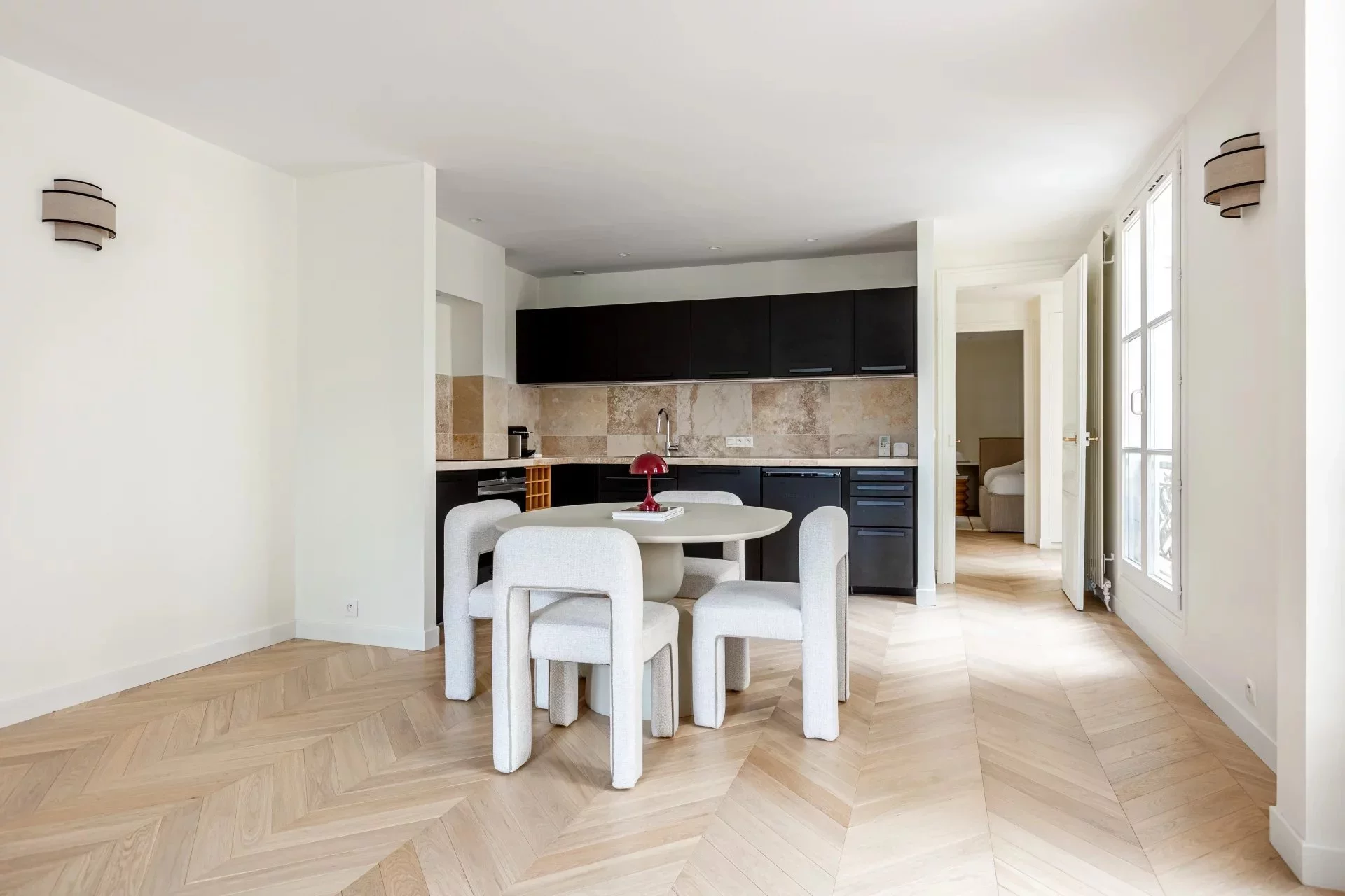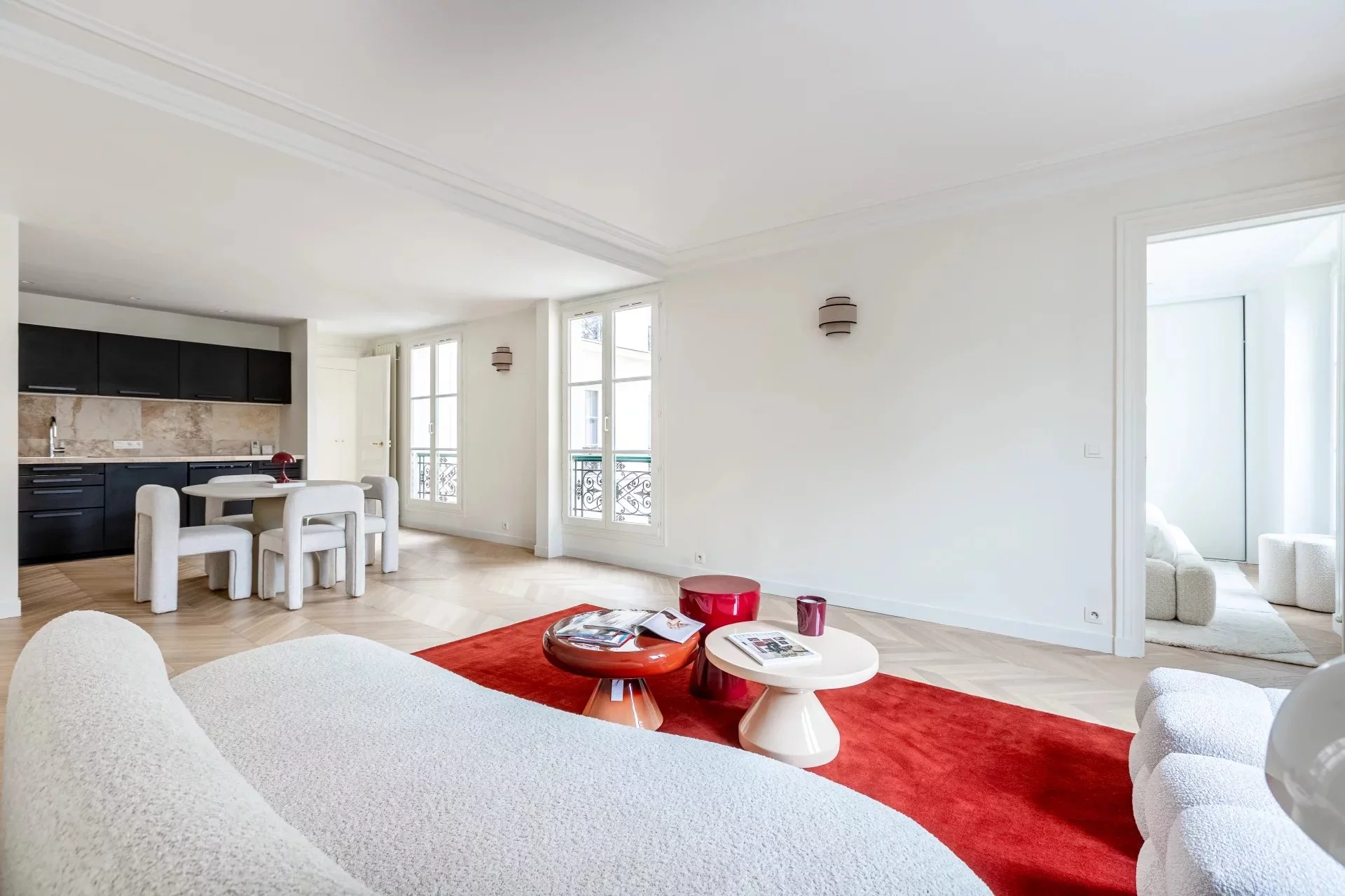 Au calme, cet appartement de 72,62m² loi Carrez, baigné de lumière, est situé place du Marché Saint-Honoré, au troisième étage d'un bel immeuble. Le plan optimisé sans perte de place comporte une entrée, un séjour avec cuisine ouverte, une chambre, un bureau, une salle de douche et des toilettes invités.
