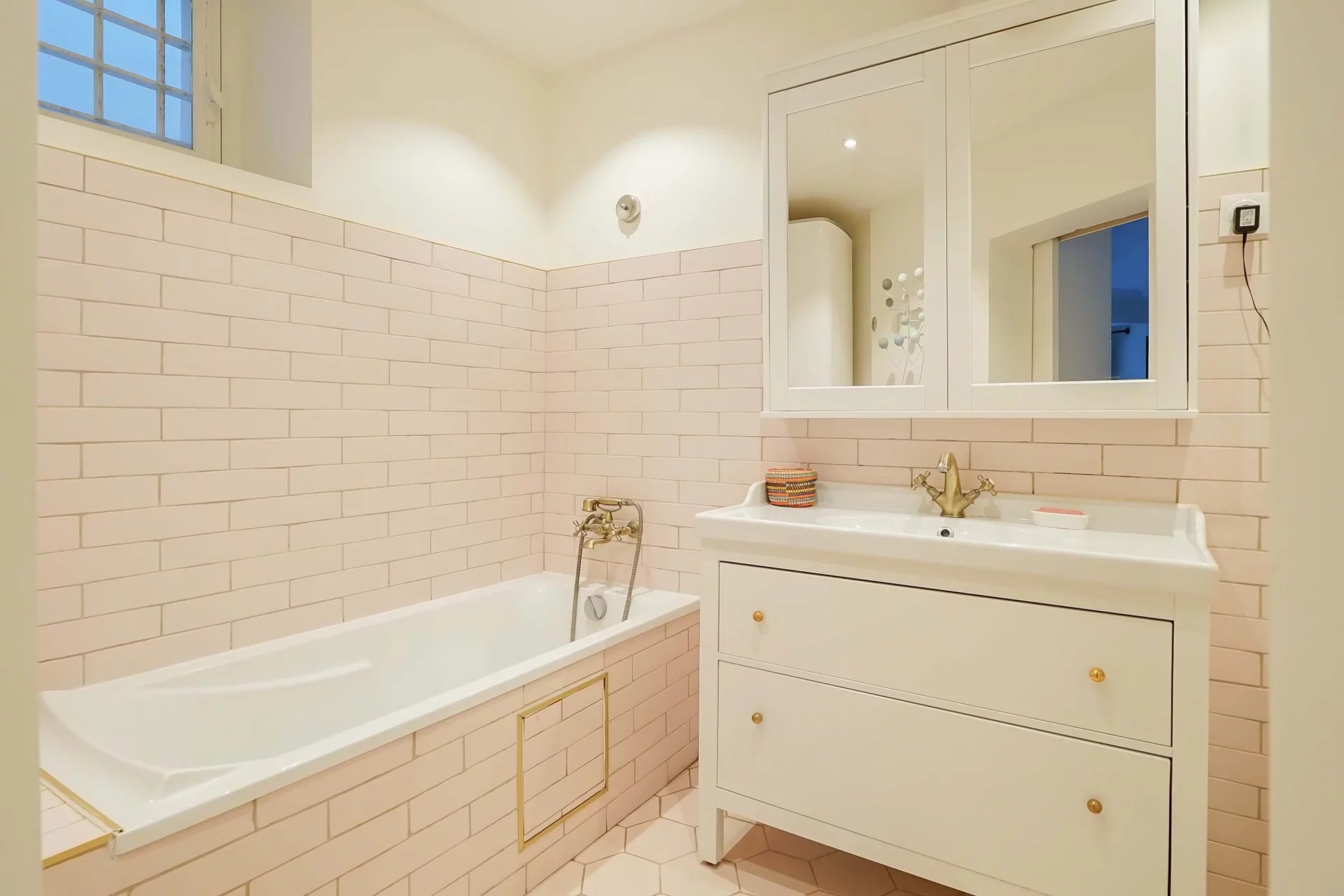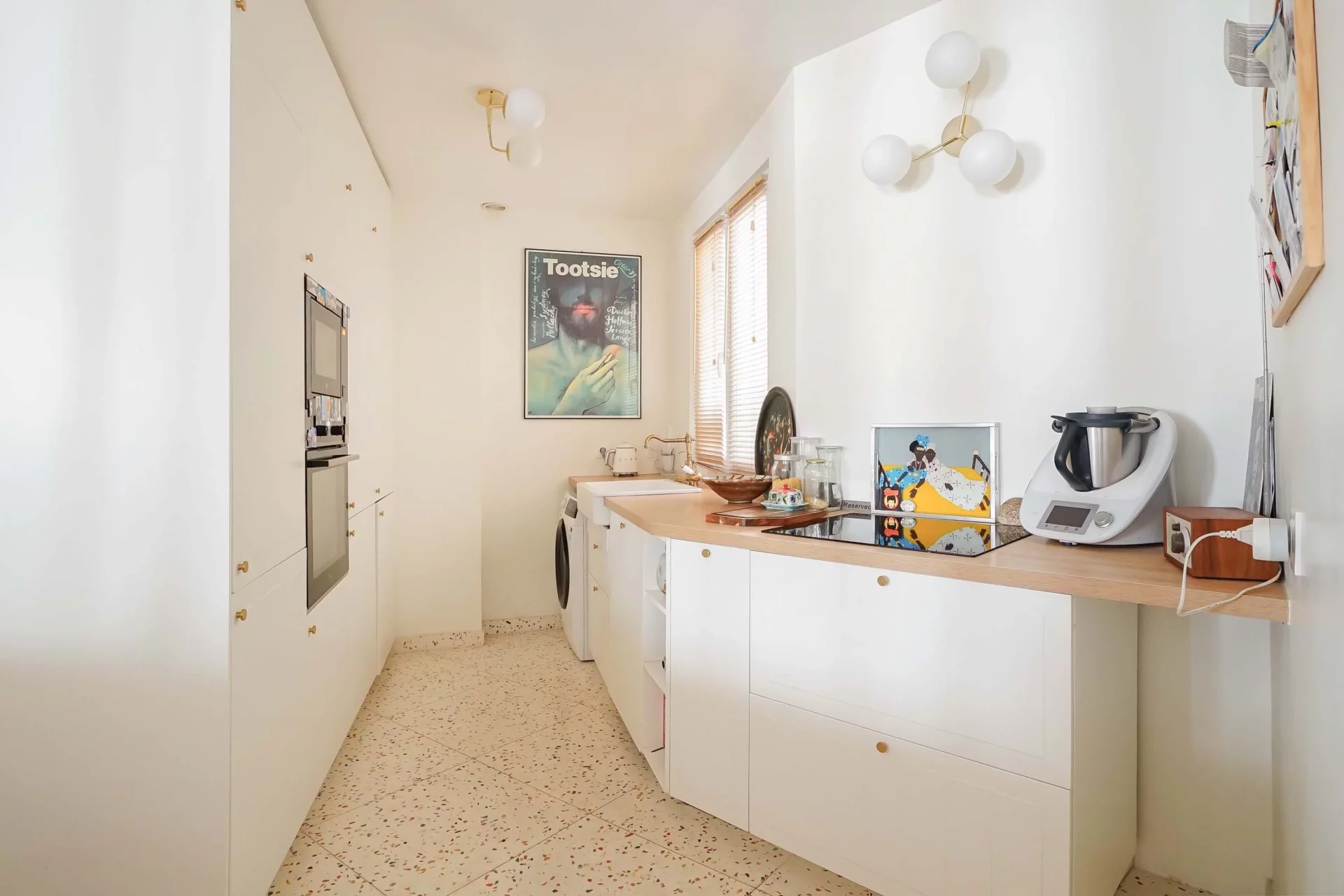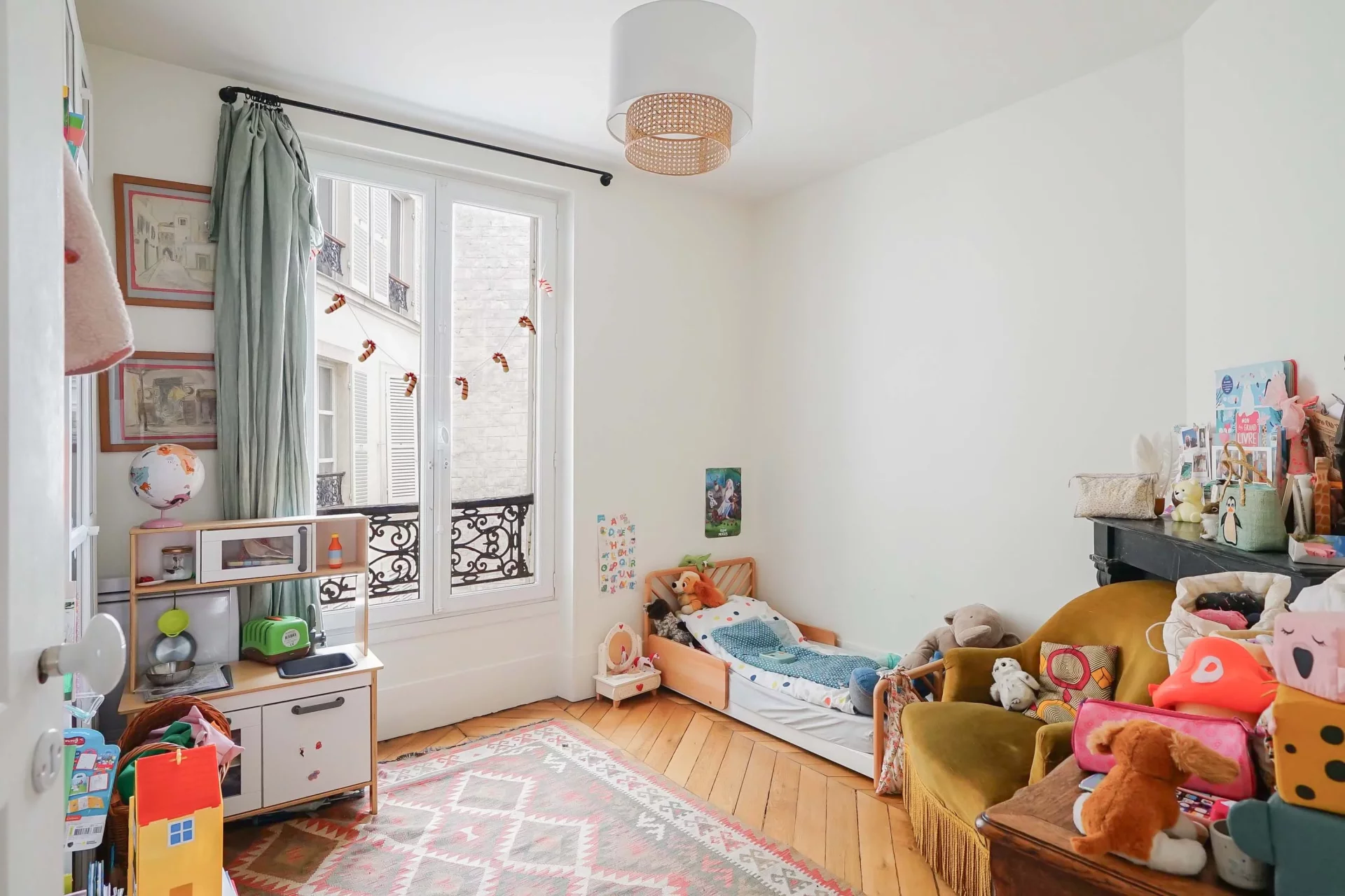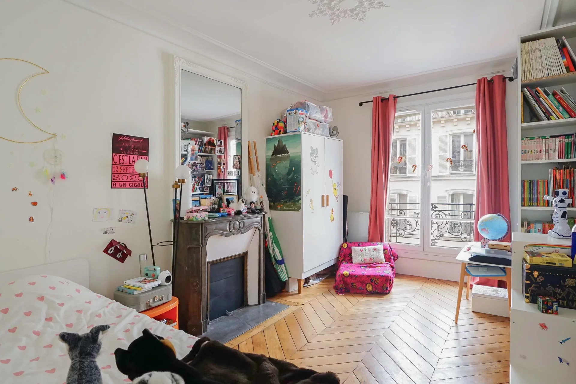 Idéalement situé aux Abbesses au quatrième étage par ascenseur d’un immeuble avec gardienne à demeure, très bel appartement familial 104,85m² loi Carrez et 105,58m² au sol.