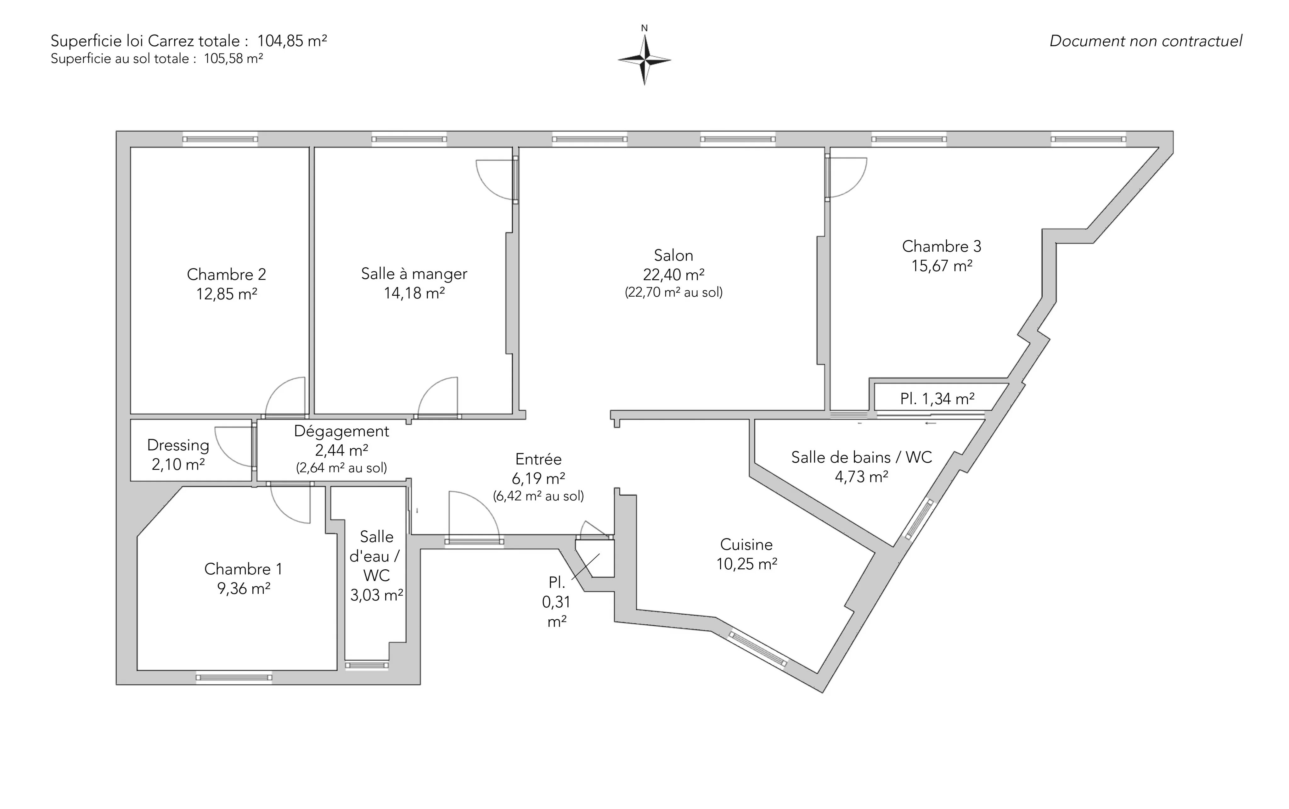 - Habitable : 104,85 m² Total : 105,58 m²