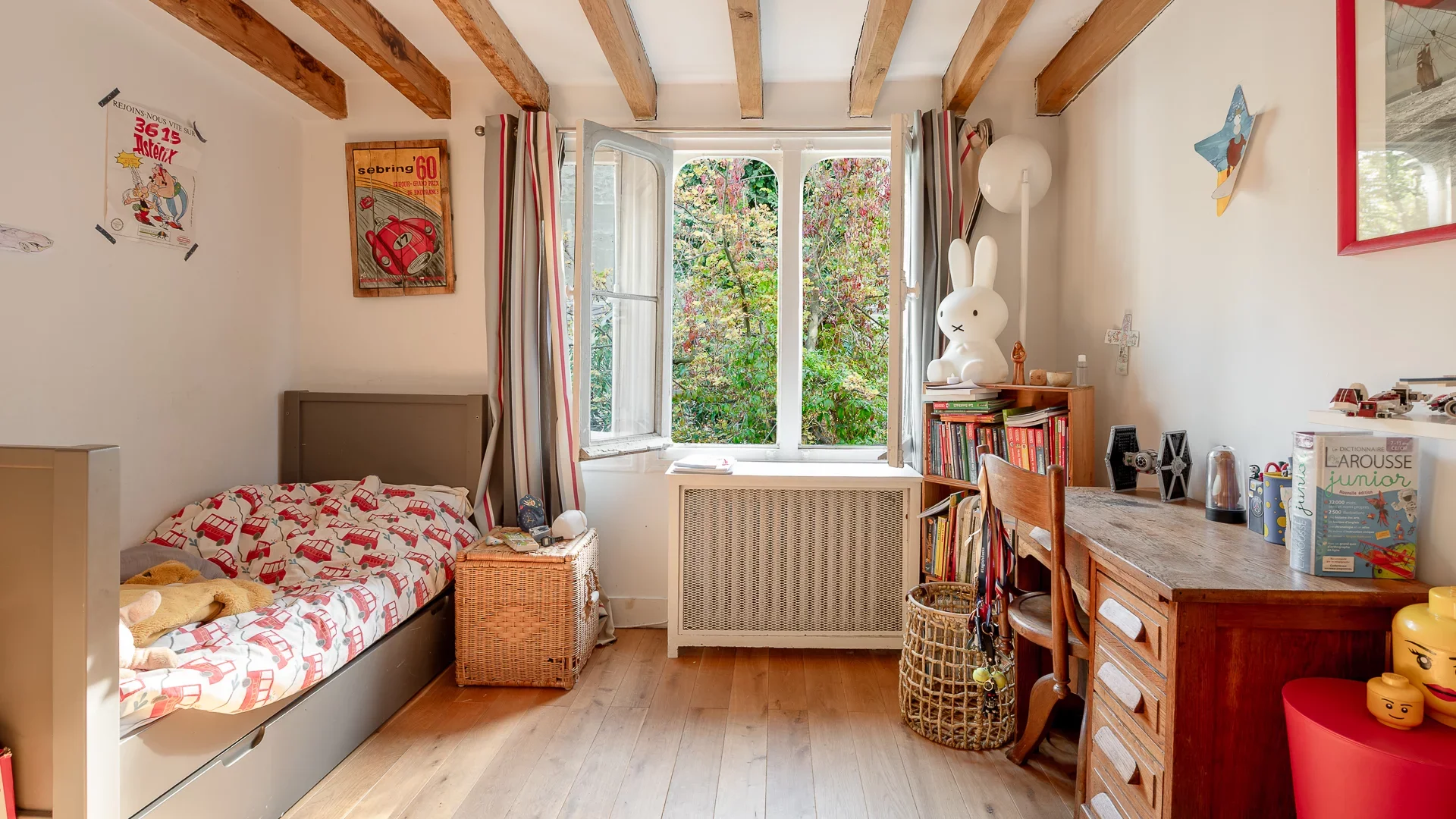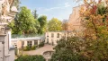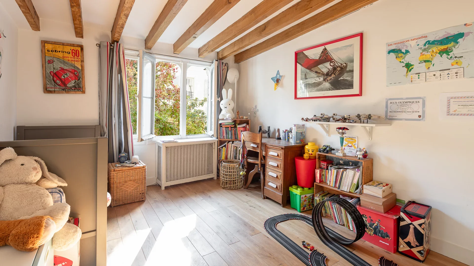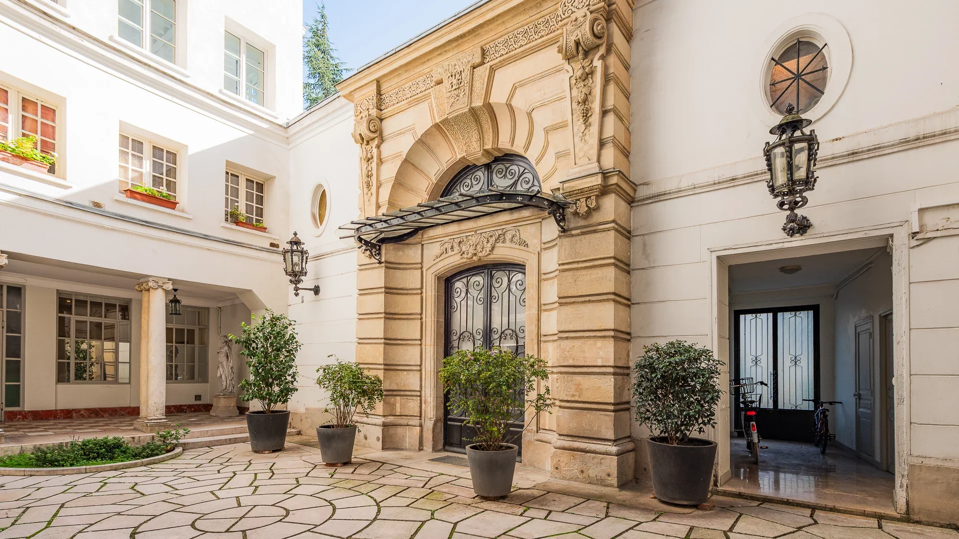 Accessible depuis un hôtel particulier, l’appartement bénéficie d’une entrée indépendante via un escalier privatif.