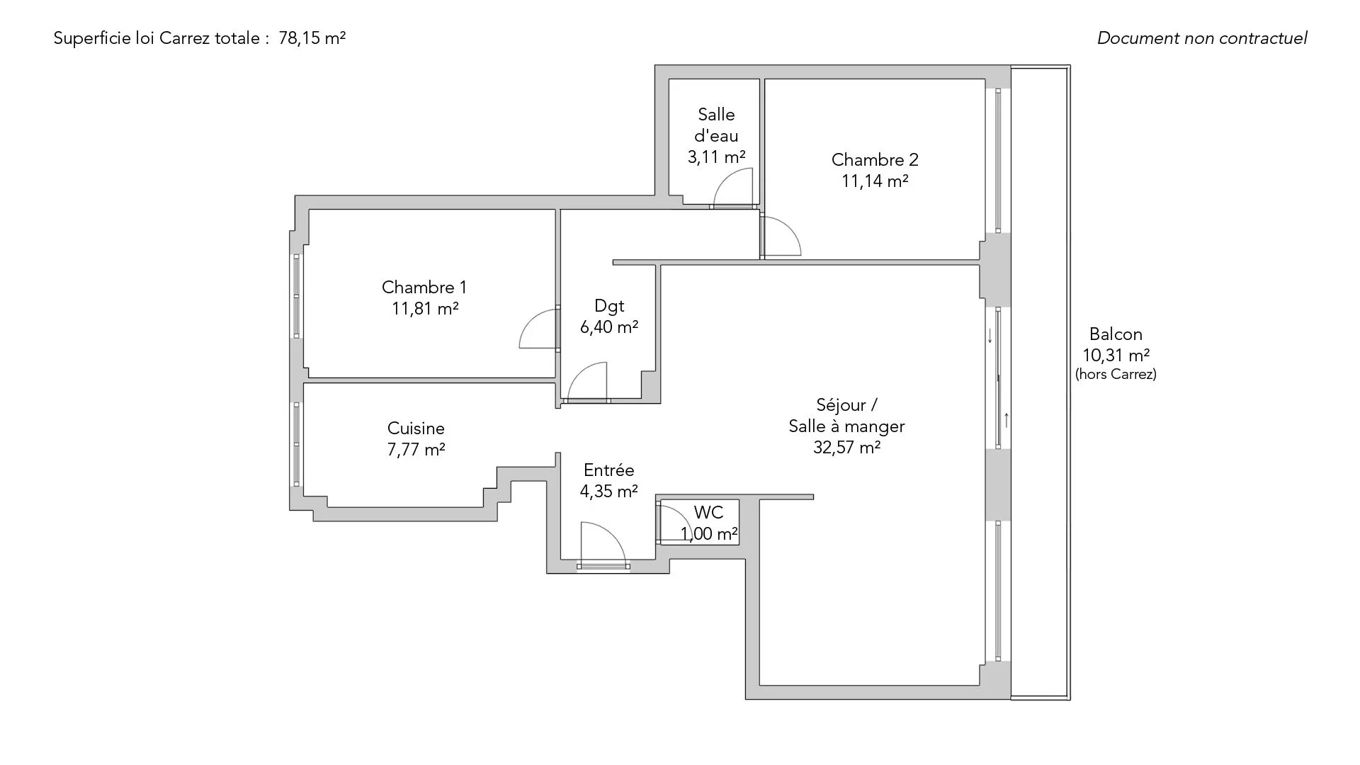 | 1x Balcon | 10.31 m² | Étage : 3ème |