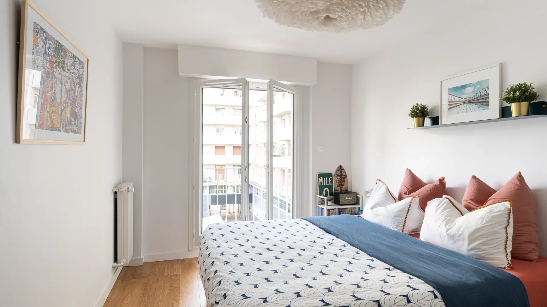 Baigné de lumière, il bénéficie d'un excellent plan : une entrée, un double séjour qui ouvre sur un balcon de 10m² exposé ouest, une cuisine indépendante aménagée et équipée. Deux chambres, une salle de douche et un espace buanderie constituent la partie nuit. Toilettes indépendantes.