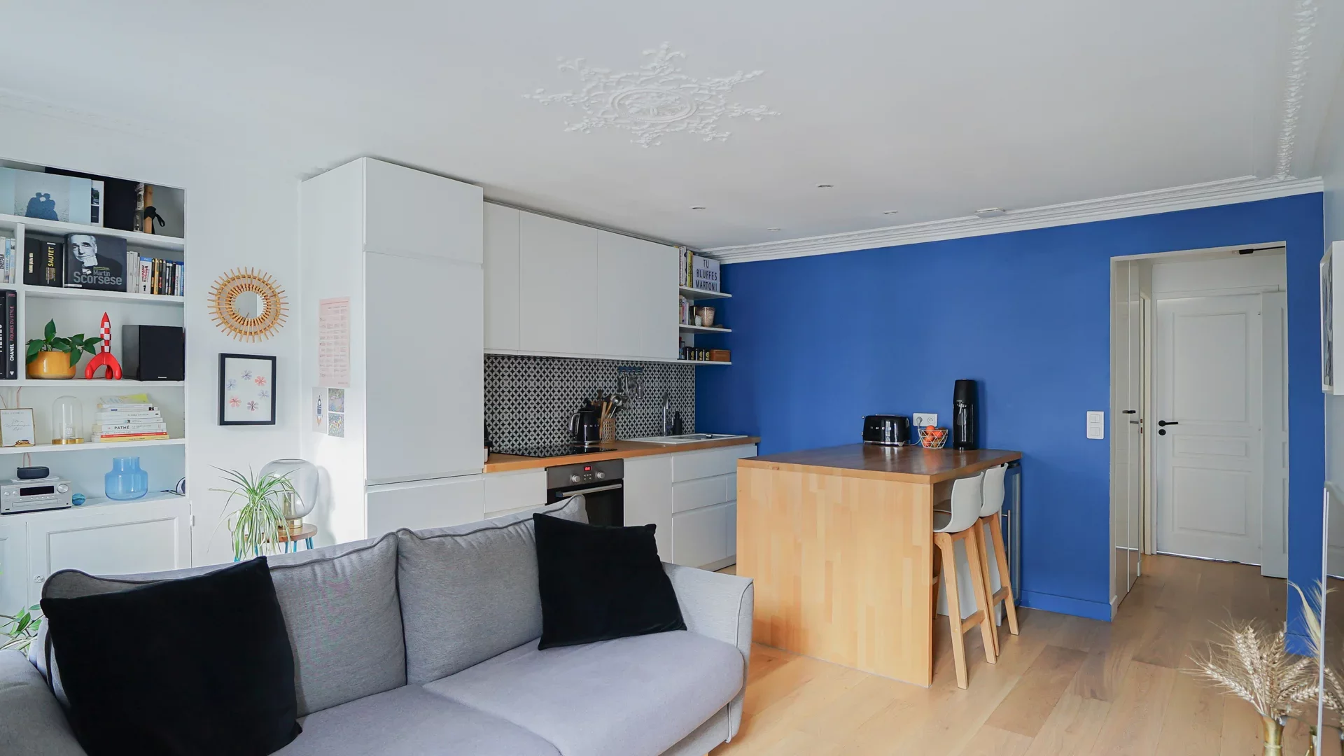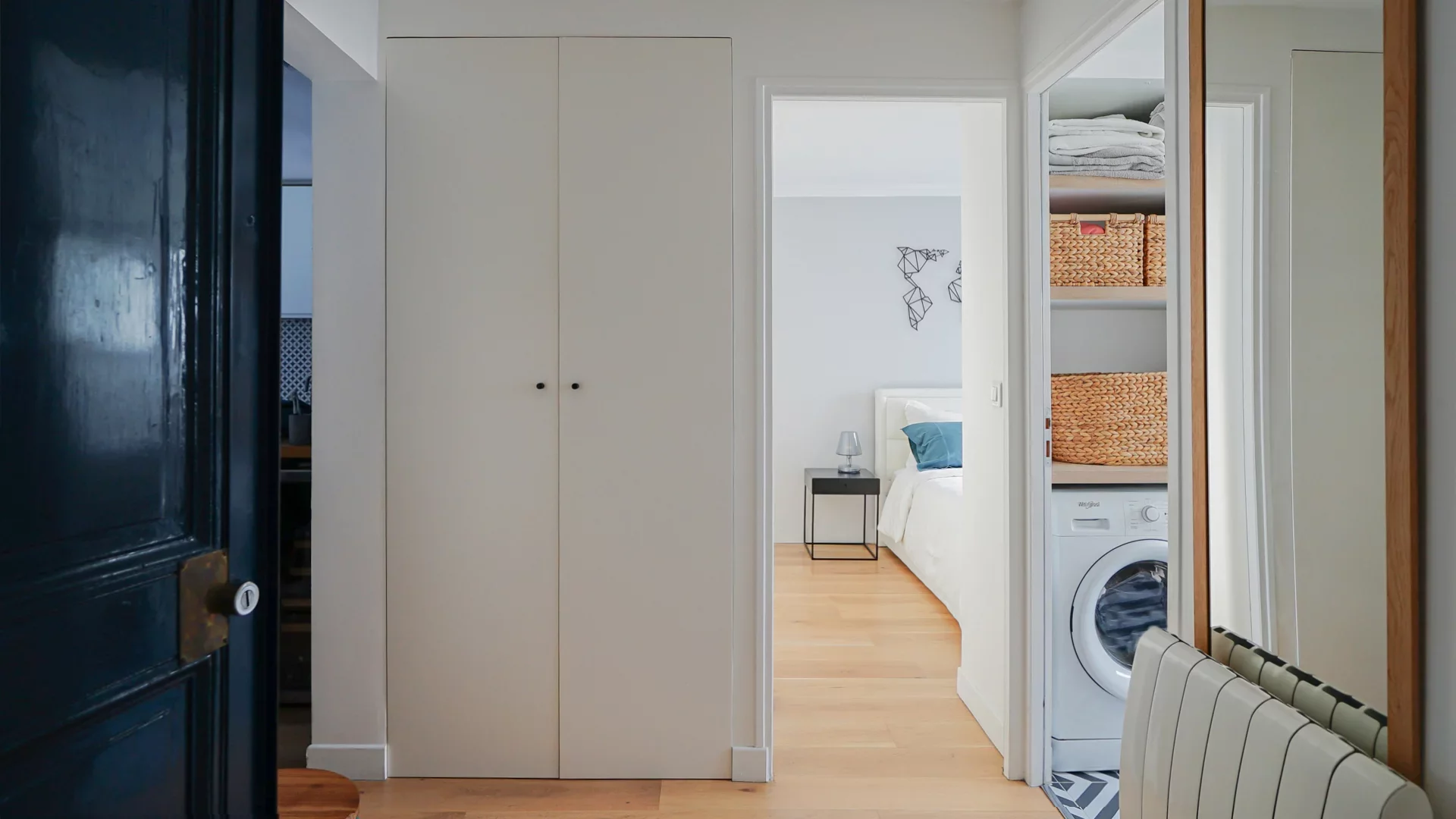 Son plan en étoile comprend une entrée avec rangements, un séjour exposé sud avec cuisine ouverte aménagée et équipée, une chambre au calme absolu sur cour avec dressing, une salle de douche avec buanderie et des toilettes séparées.