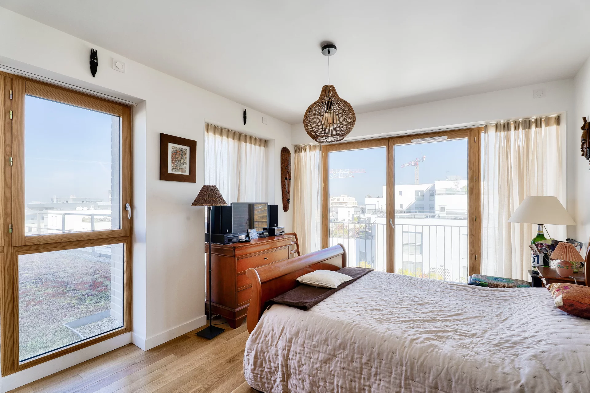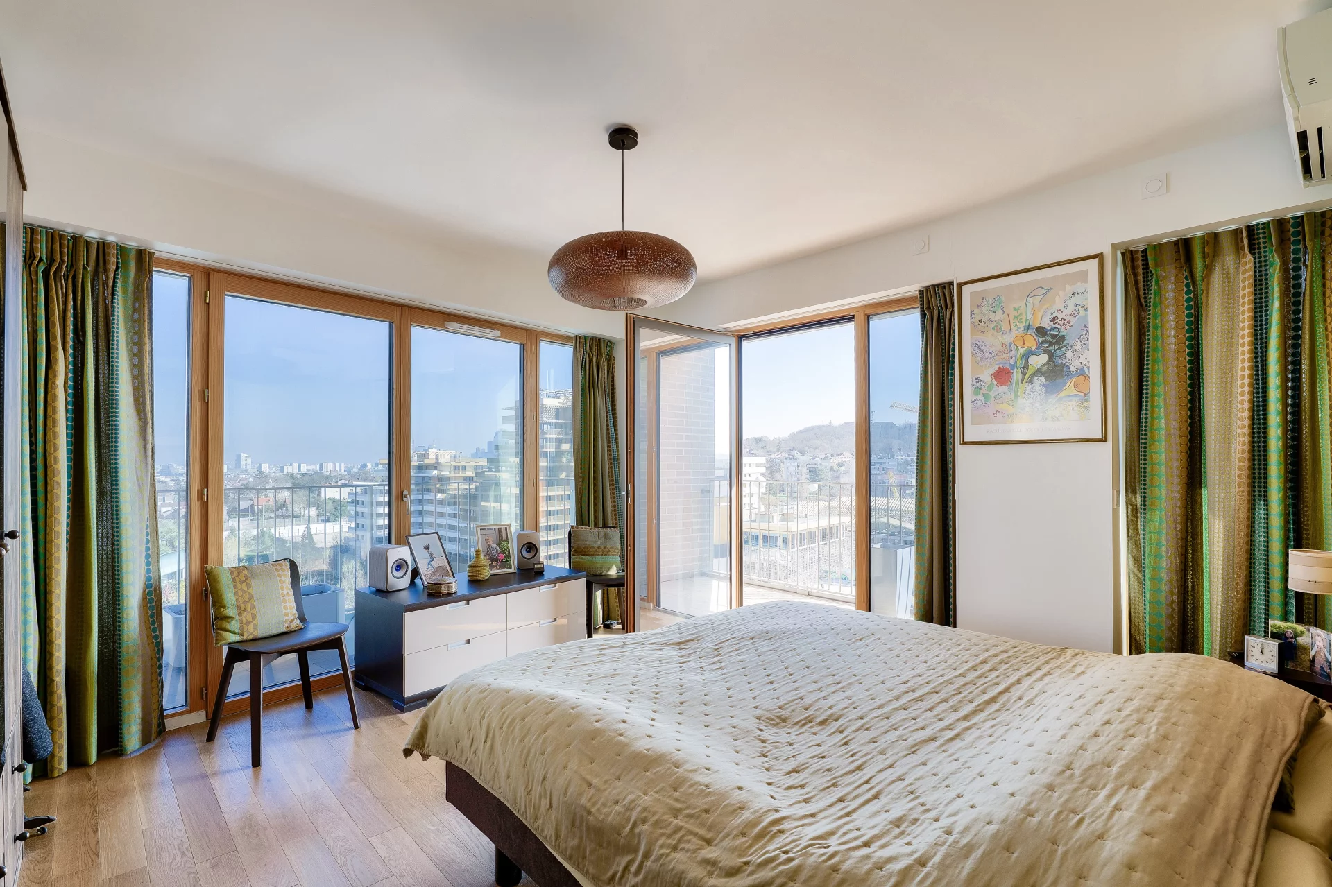 Situé dans le quartier prisé de l’Arsenal à proximité immédiate de la futur ligne 15, au dernier étage d’une résidence contemporaine, ce magnifique duplex de 144,80 m² (Loi Carrez) séduit par ses volumes généreux, sa luminosité et la qualité de ses prestations.