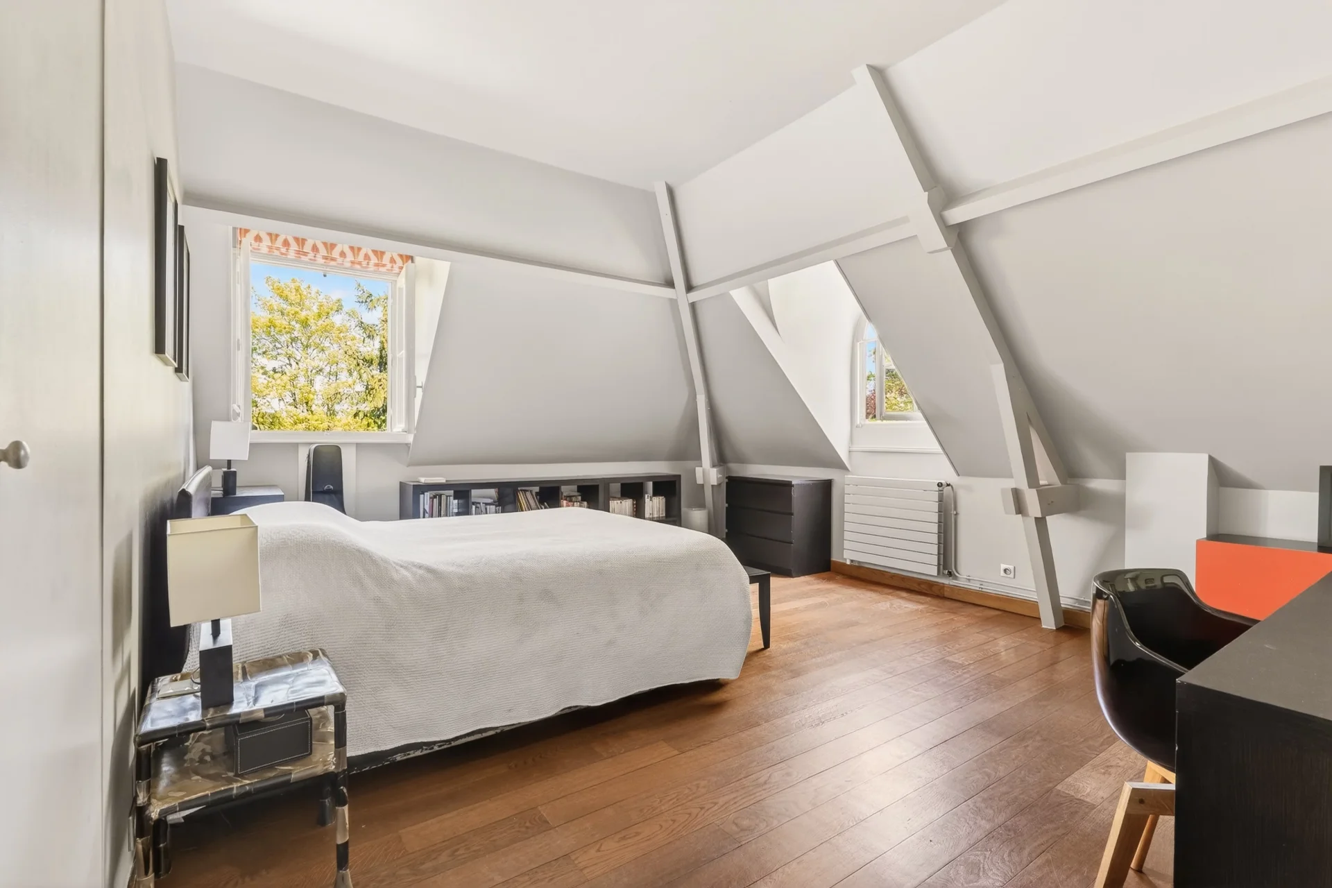 Le premier étage accueille une suite parentale avec jacuzzi, hammam, douche et sanitaires privatifs, trois chambres spacieuses, un bureau aménagé (ou chambre supplémentaire), un grand dressing, trois salles de bains avec toilettes ainsi que des toilettes indépendantes. En rez-de-jardin, un appartement indépendant composé d’un séjour avec cuisine ouvrant sur un jardin, d’une chambre et d’une salle de douche avec toilettes pourra répondre à différents besoins : logement pour une jeune fille au pair, un adolescent ou des invités.