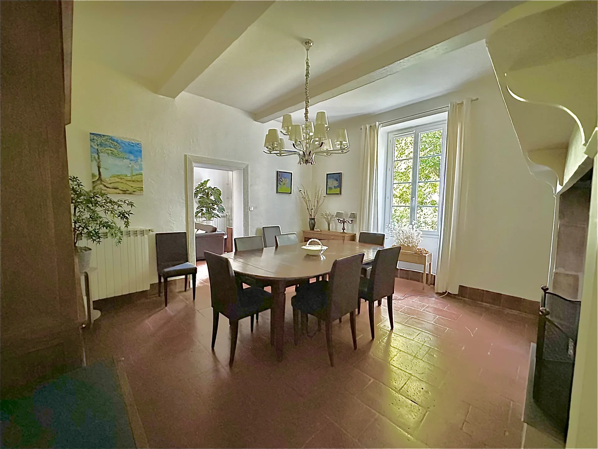Elle est entourée d’un terrain clos de 8.000 M² planté de cèdres centenaires, platanes, chênes, tilleul et arbres fruitiers.