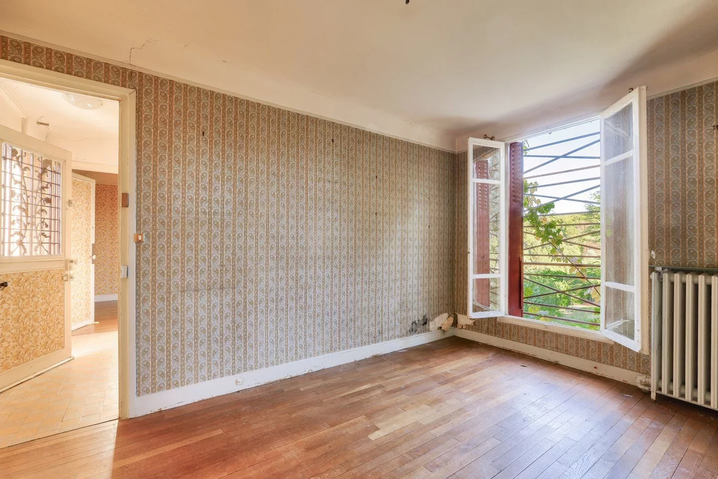 Le rez-de-jardin accueille les pièces de vie, avec un séjour lumineux ouvert sur le jardin, une cuisine indépendante ainsi que les espaces fonctionnels, tandis que l’étage se compose de trois chambres, dont deux prolongées par un balcon et reliées par une salle de bains avec toilettes.