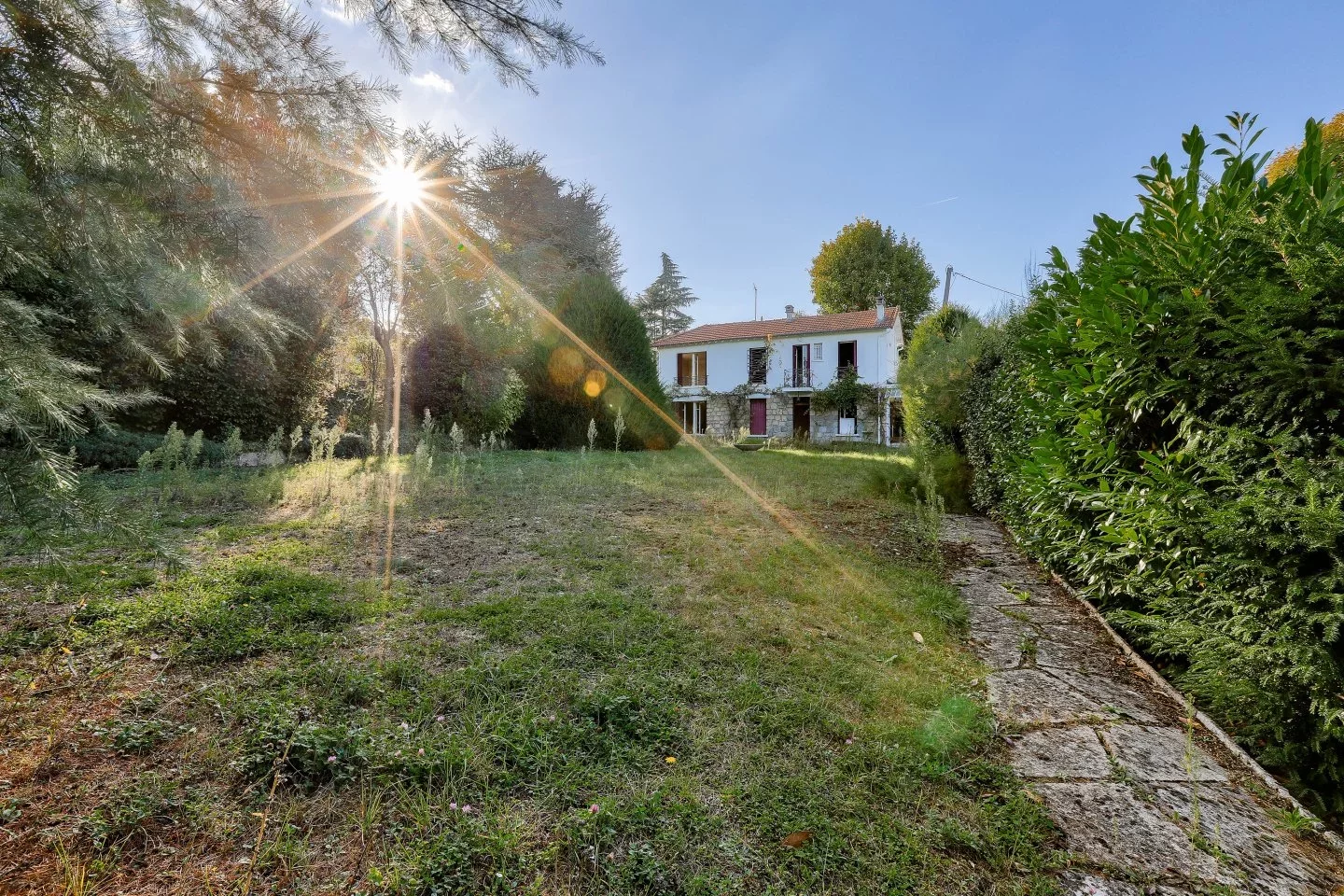 Nichée sur les hauteurs de Bougival, à l’abri des regards et dans un environnement d’un calme absolu, cette longère des années 50 bénéficie d’une situation privilégiée, à seulement quinze minutes à pied du centre-ville, de la gare SNCF et des commerces. Édifiée sur une parcelle indépendante et arborée de 1 211 m², elle développe environ 140 m² habitables et profite d’une vue entièrement dégagée sur le village et la colline de la Jonchère.
