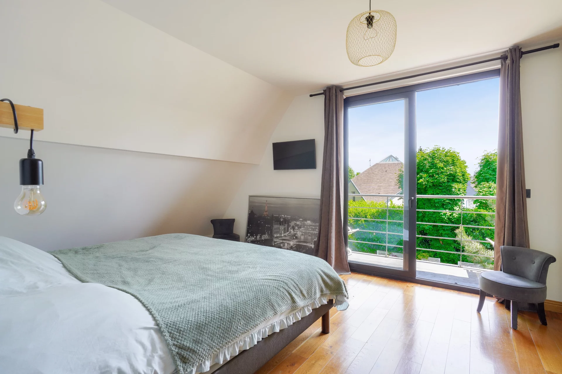 Un garage attenant équipé d'une borne de recharge complète les prestation de ce bien rare.