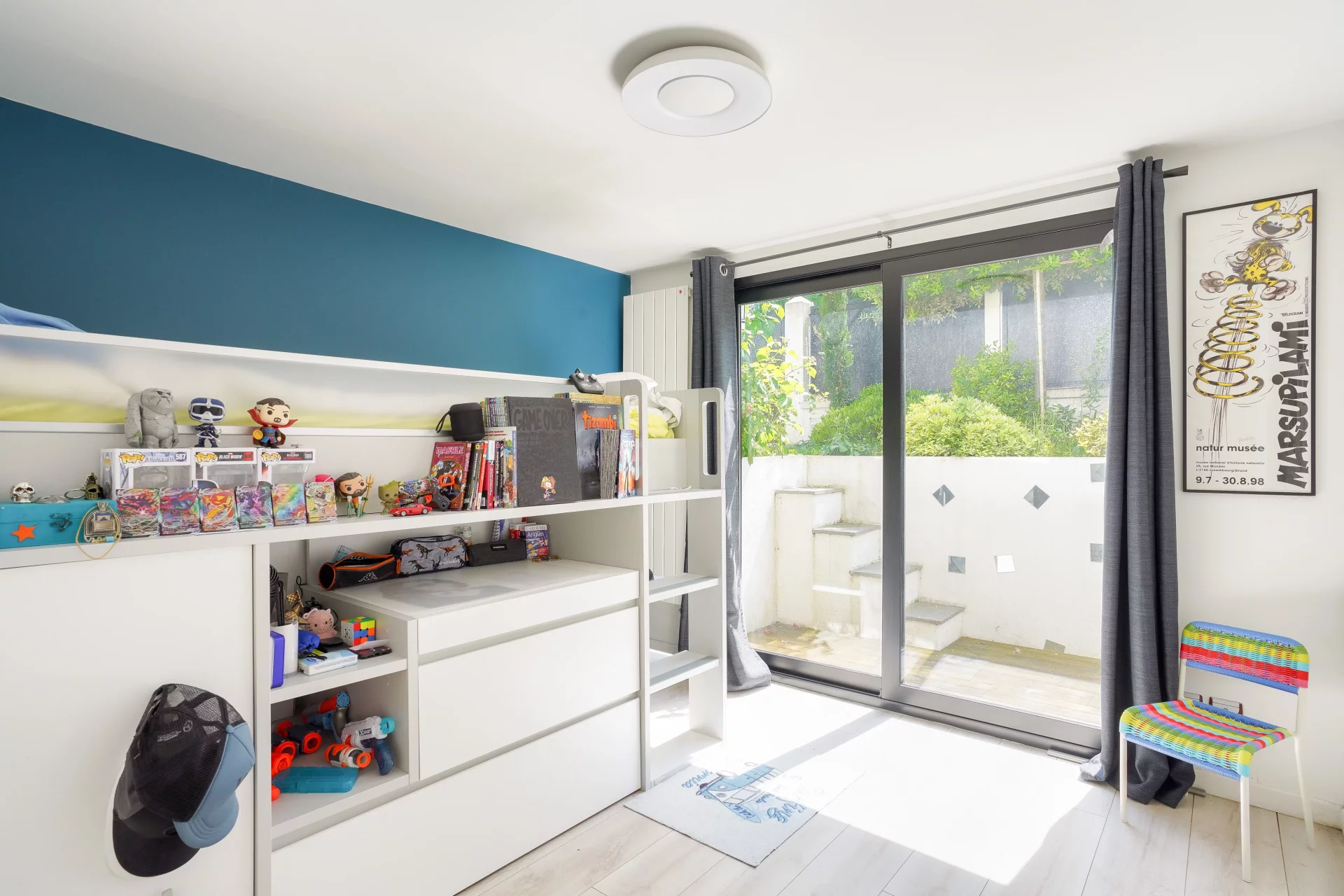 Le rez-de-jardin a été entièrement aménagé pour répondre aux besoins d’une vie de famille ou recevoir avec aisance. Il propose une salle de sport, trois chambres supplémentaires dont une avec salle de douche privative, une seconde salle de douche, une buanderie ainsi qu’un atelier spacieux et polyvalent. Chaque chambre ouvre sur une terrasse privée, créant une relation privilégiée avec l’extérieur.