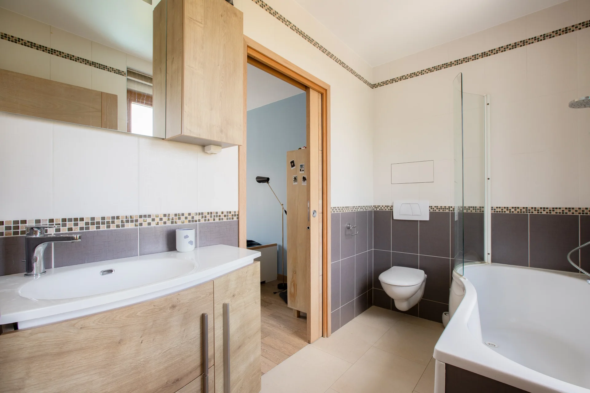 Dès l’entrée, vous découvrirez une belle pièce de vie de près de 55m² avec cuisine ouverte, l’ensemble s’ouvrant sur une grande terrasse.