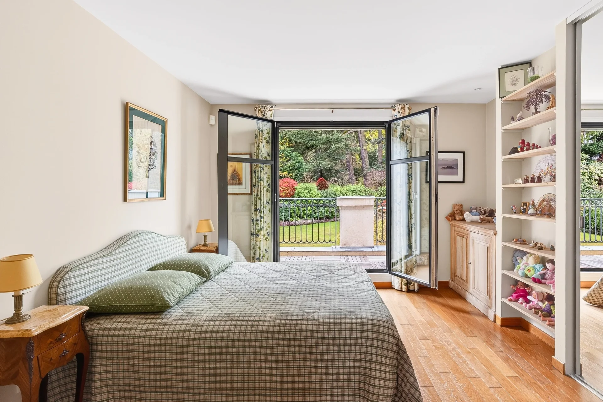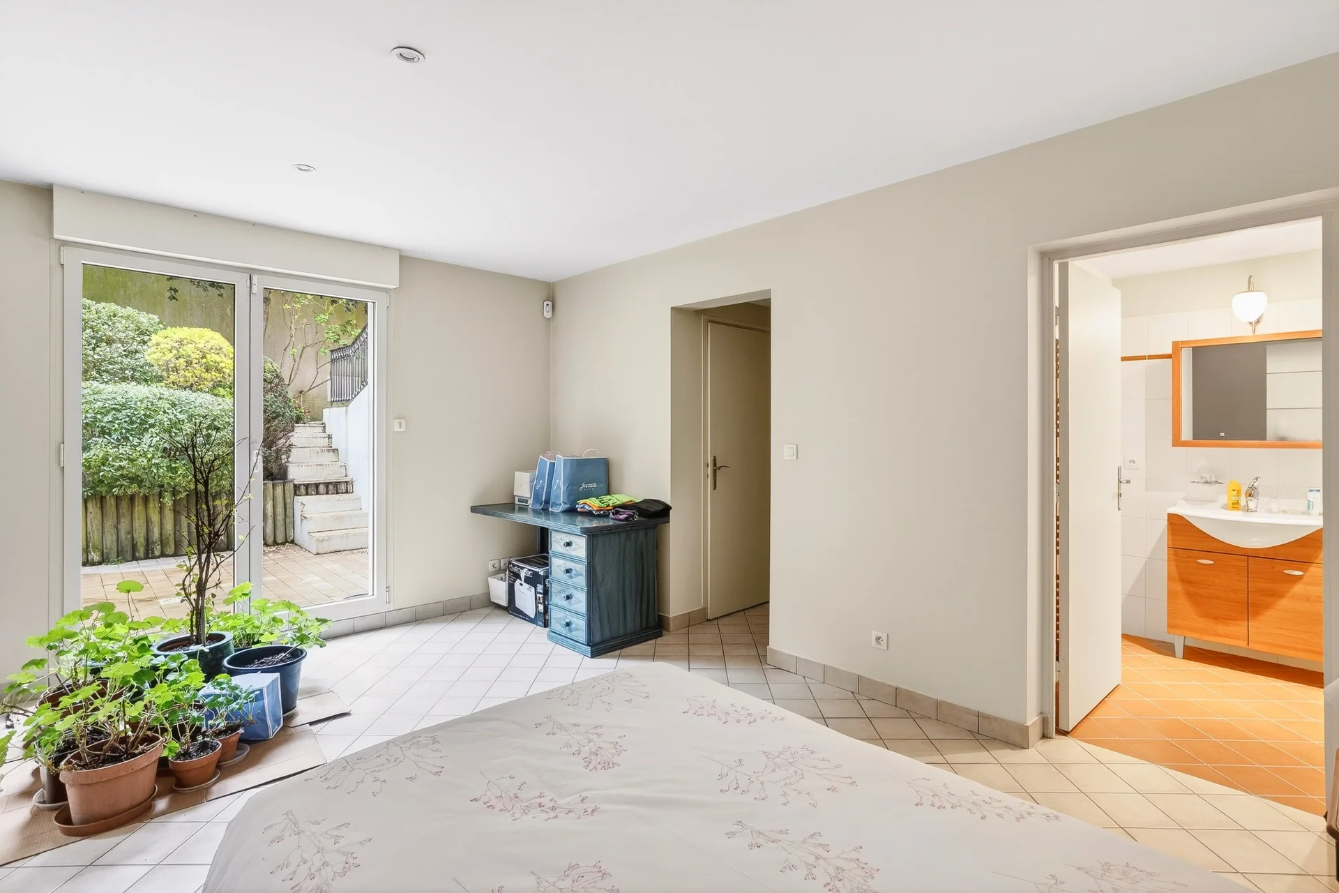 Le rez-de-jardin comprend un studio indépendant avec salle de bains et toilettes, ouvrant sur une terrasse (idéal pour une jeune fille au pair), une pièce avec fenêtre, une salle de sport, une cave à vin et de nombreux espaces de rangement.