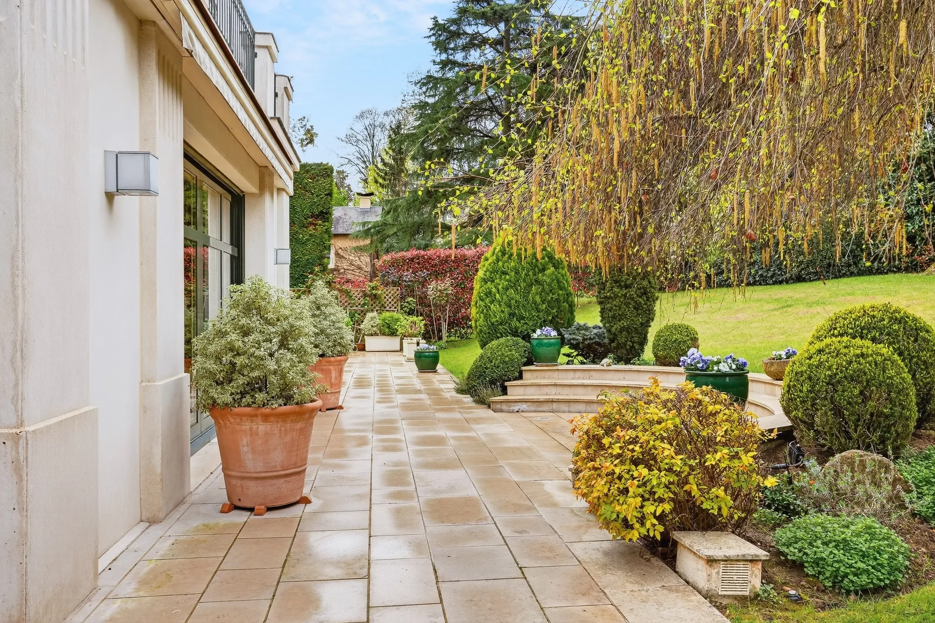 Au calme d’un chemin privé, cette propriété de 380 m² habitables (550 m² au sol), édifiée en 2004 sur un terrain paysager de 1 275 m², offre un cadre de vie rare à proximité immédiate du Parc de Saint-Cloud et à seulement 15 minutes de Paris.