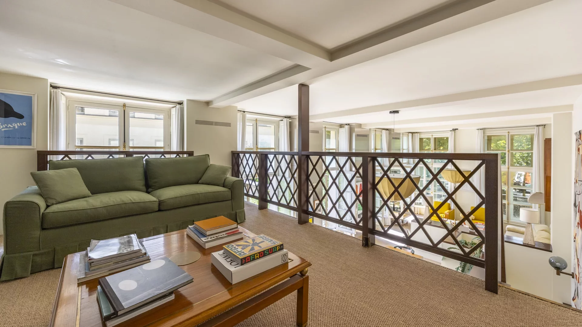 Une élégante mezzanine complète cet espace, idéale pour un bureau ou une chambre d’appoint.