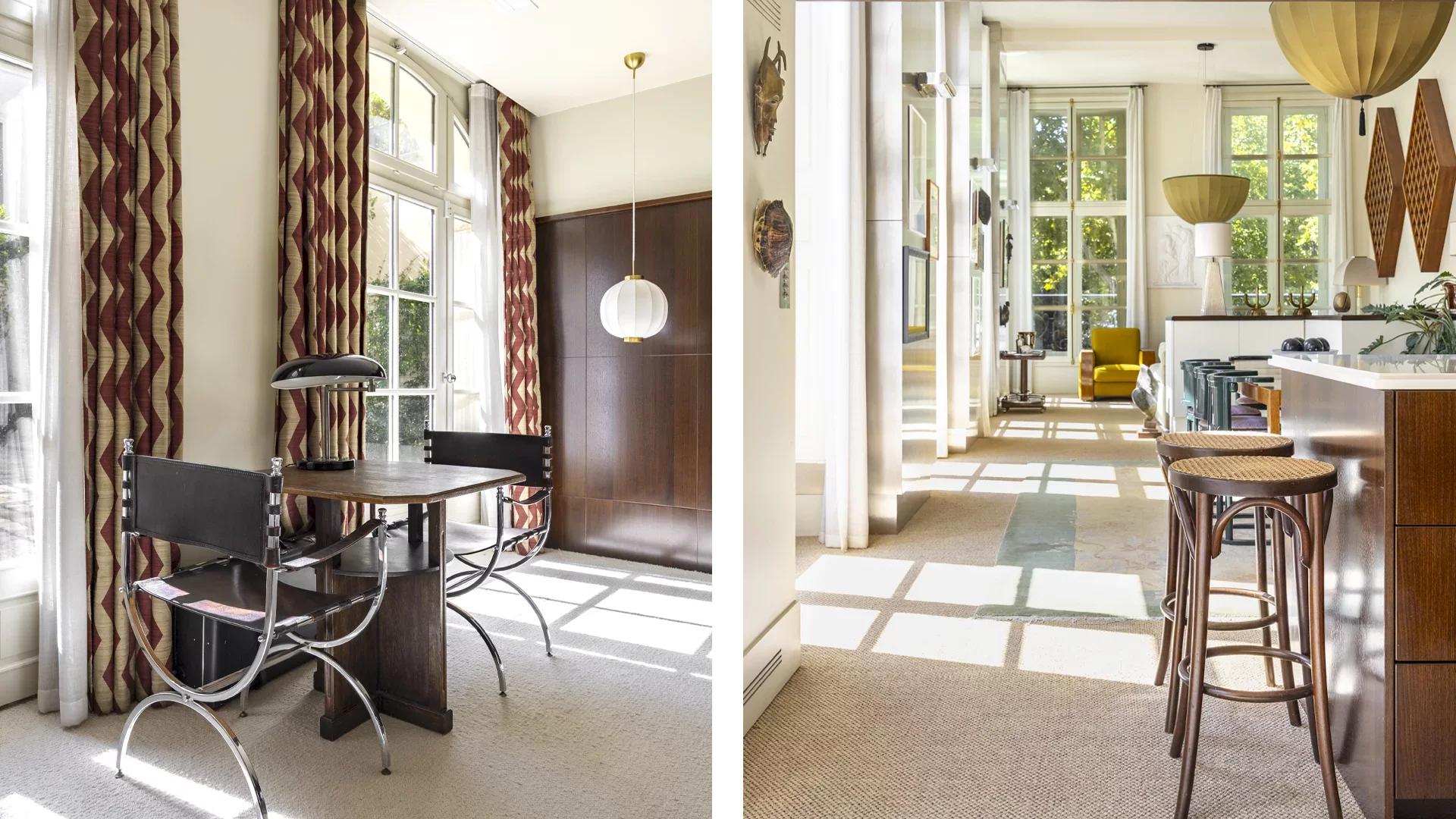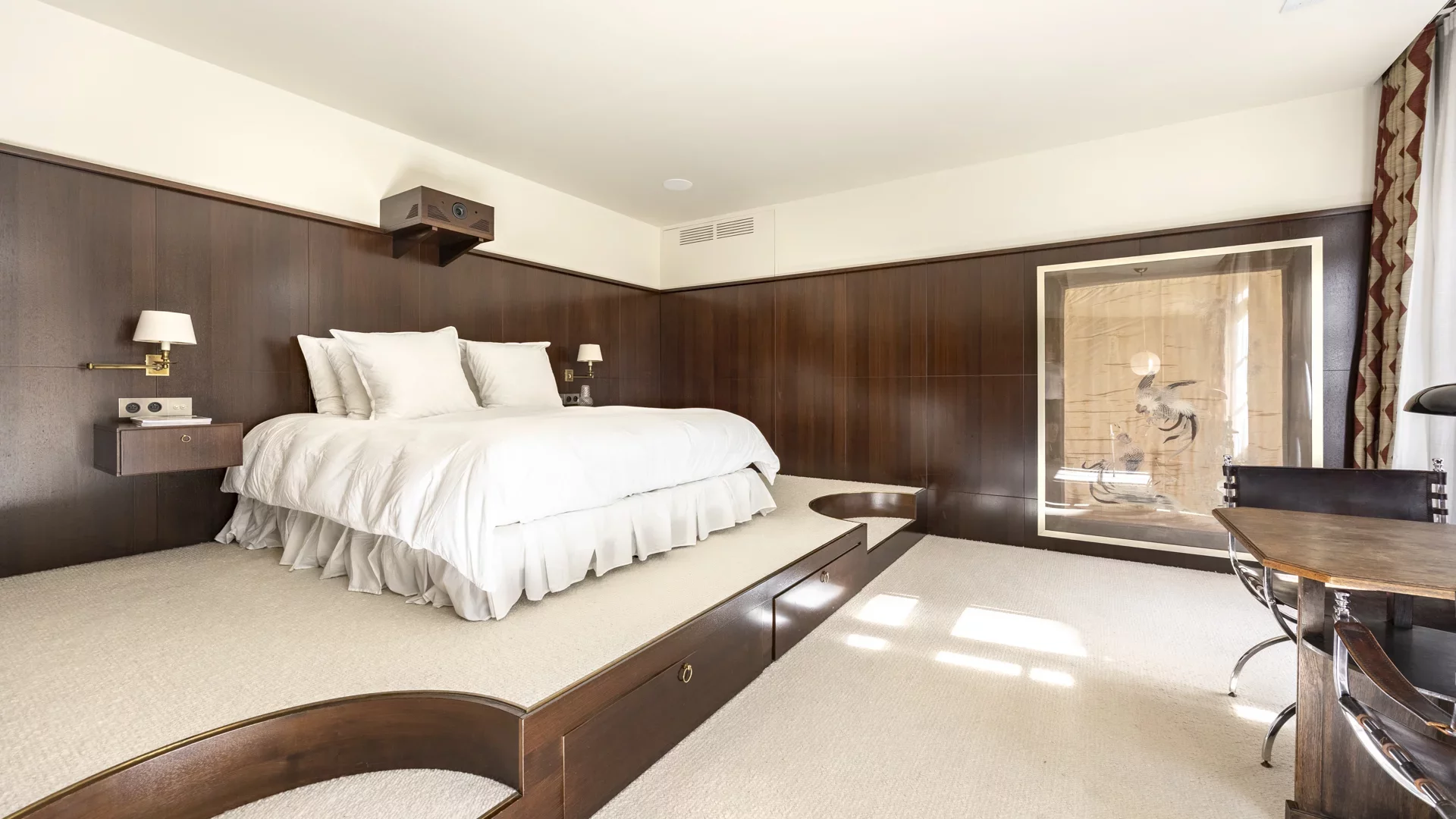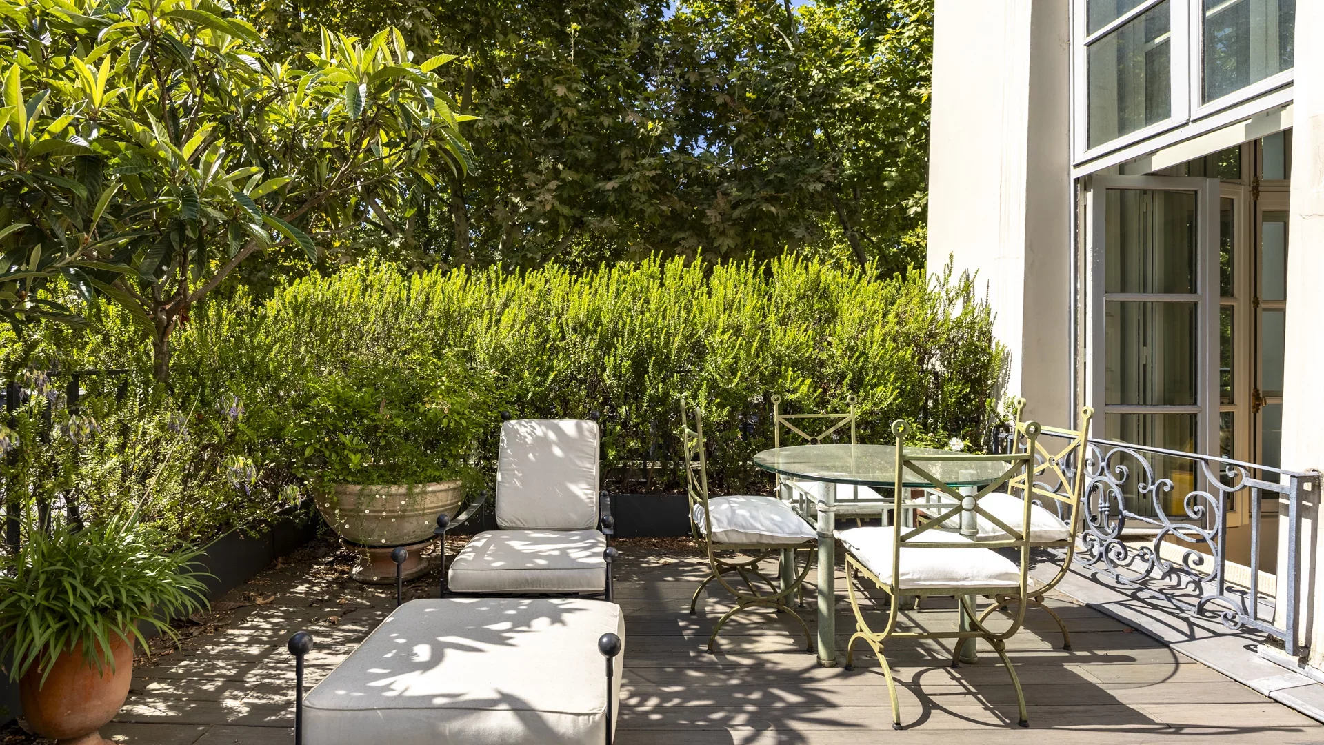 Au premier étage, il comporte une vaste réception aux volumes impressionnants (4,50m de hauteur sous plafond) et baigné de lumière (orientation sud-est) donnant de plain-pied sur une terrasse aménagée par le paysagiste Louis Benech.