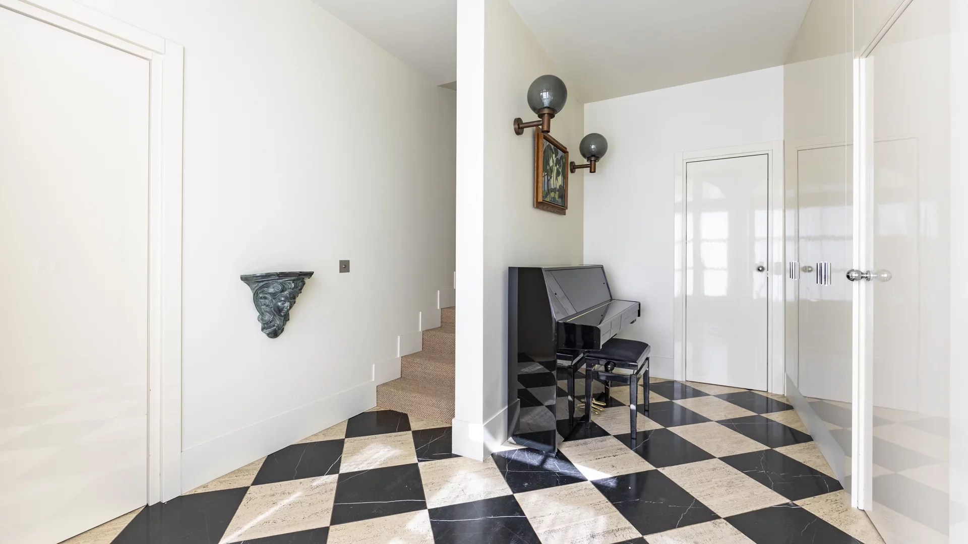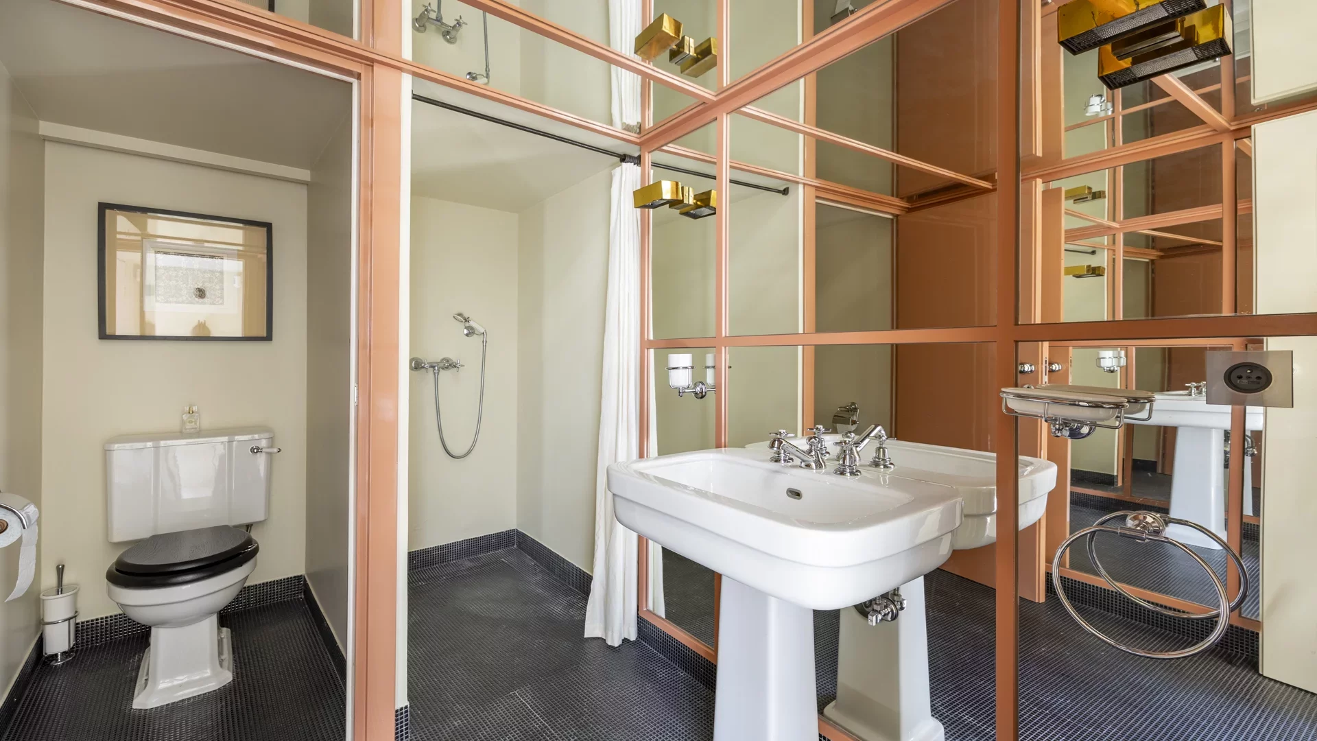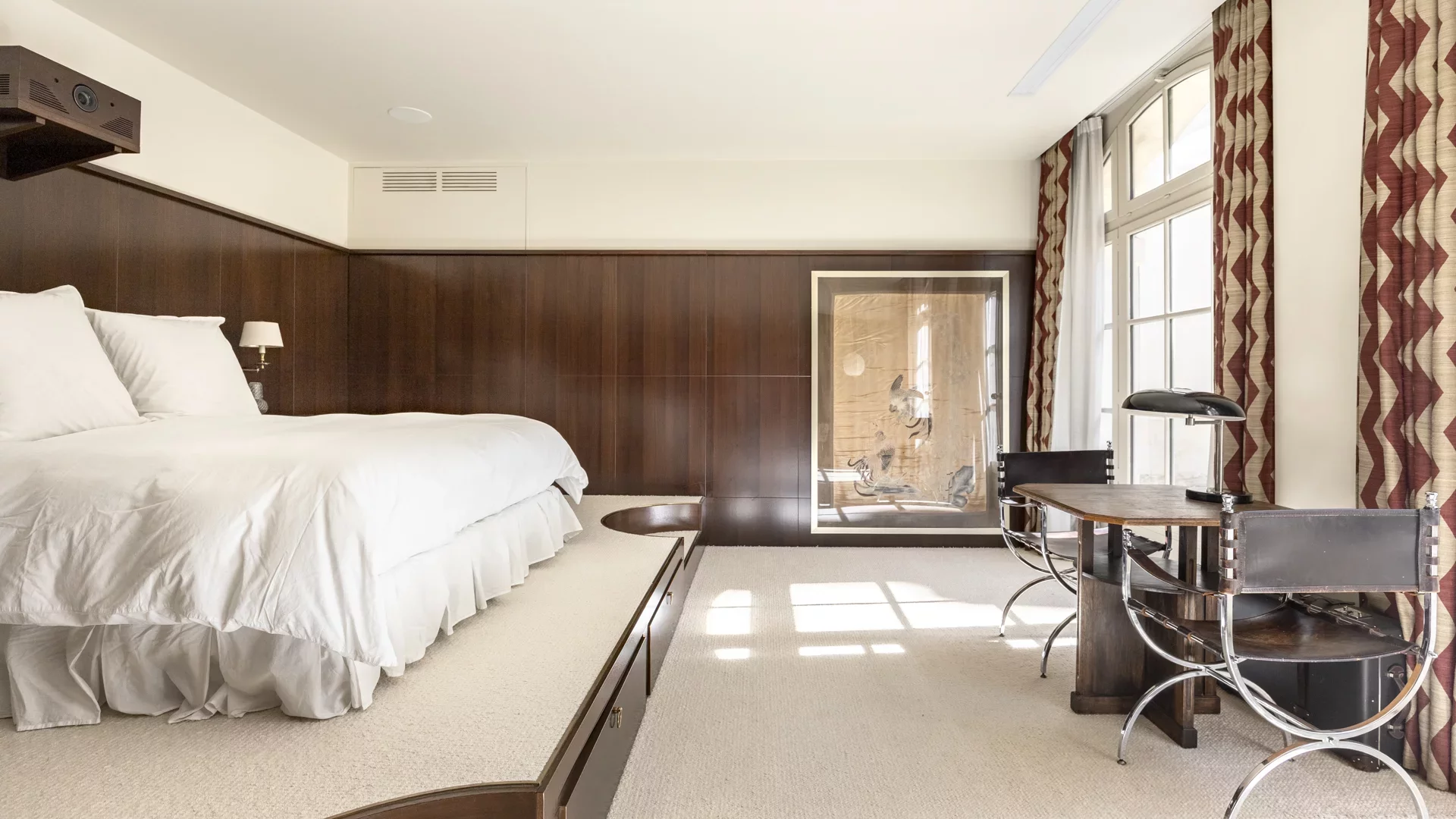 Au premier étage, il comporte une vaste réception aux volumes impressionnants (4,50m de hauteur sous plafond) et baigné de lumière (orientation sud-est) donnant de plain-pied sur une terrasse aménagée par le paysagiste Louis Benech.