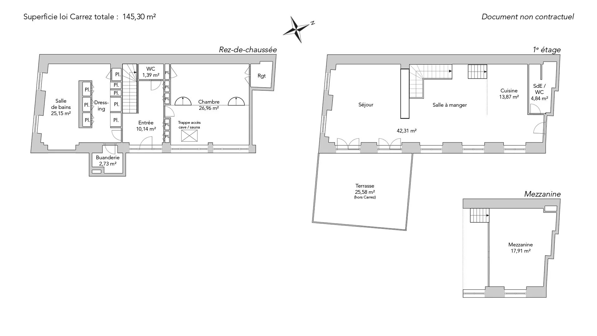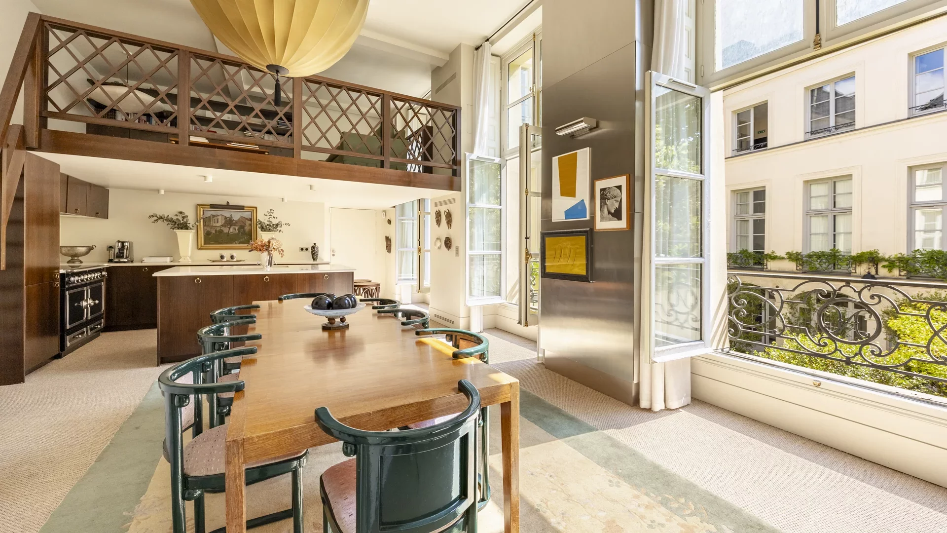 Dans un magnifique hôtel particulier du XVIIe siècle, ce duplex d’exception de 181,90m² au sol (145,30m² loi Carrez), entièrement rénové par le décorateur Fabrizio Casiraghi, allie charme historique et prestations contemporaines.