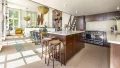 Au même niveau, une cuisine haut de gamme équipée La Cornue, une salle à manger, un salon, une salle de douche avec toilettes.