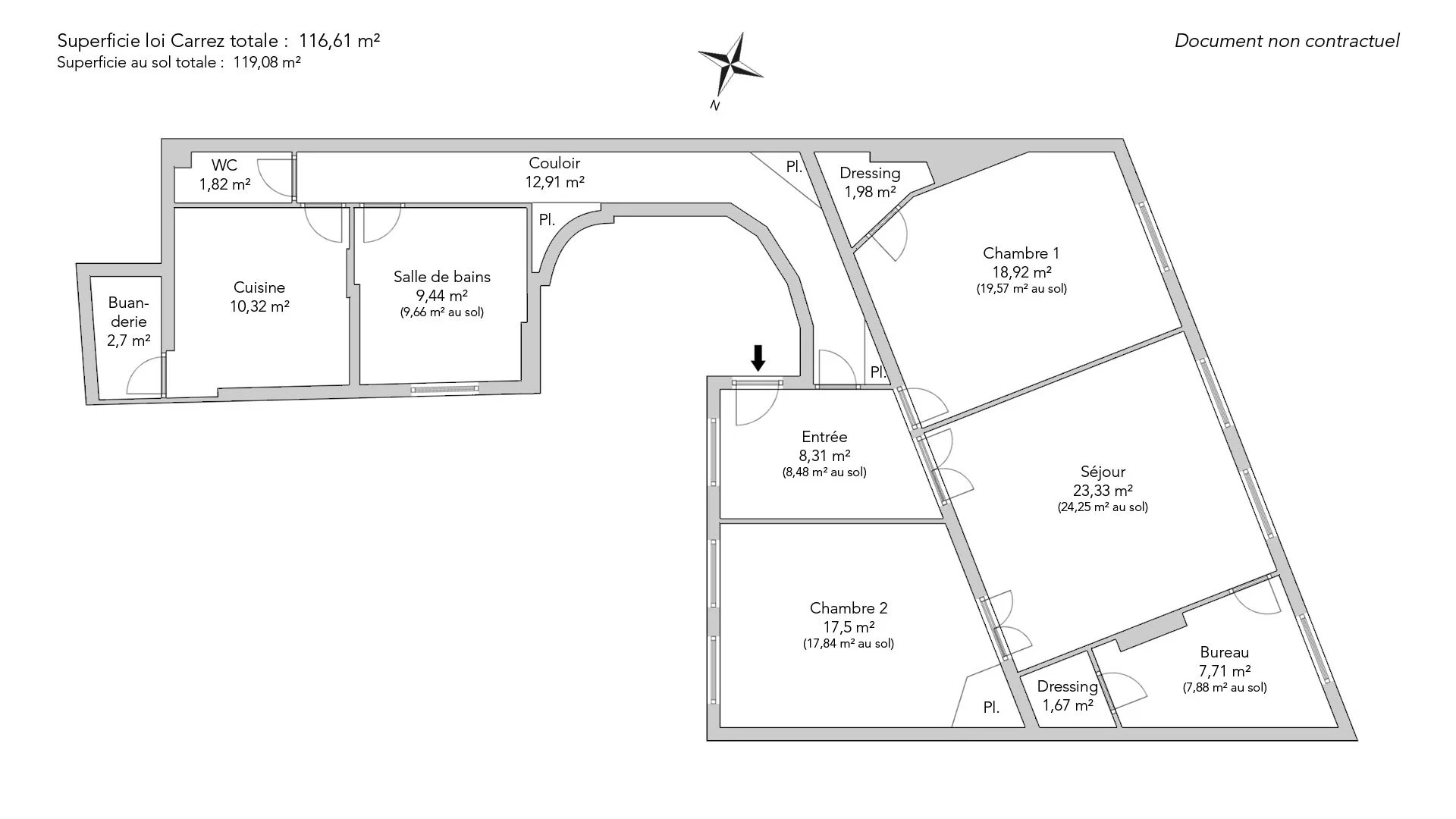 Situé au première étage par ascenseur d'un bel immeuble, cet appartement en excellent état de 116,61m² loi Carrez saura vous séduire par son charme parisien avec ses moulures et son parquet d'origine.