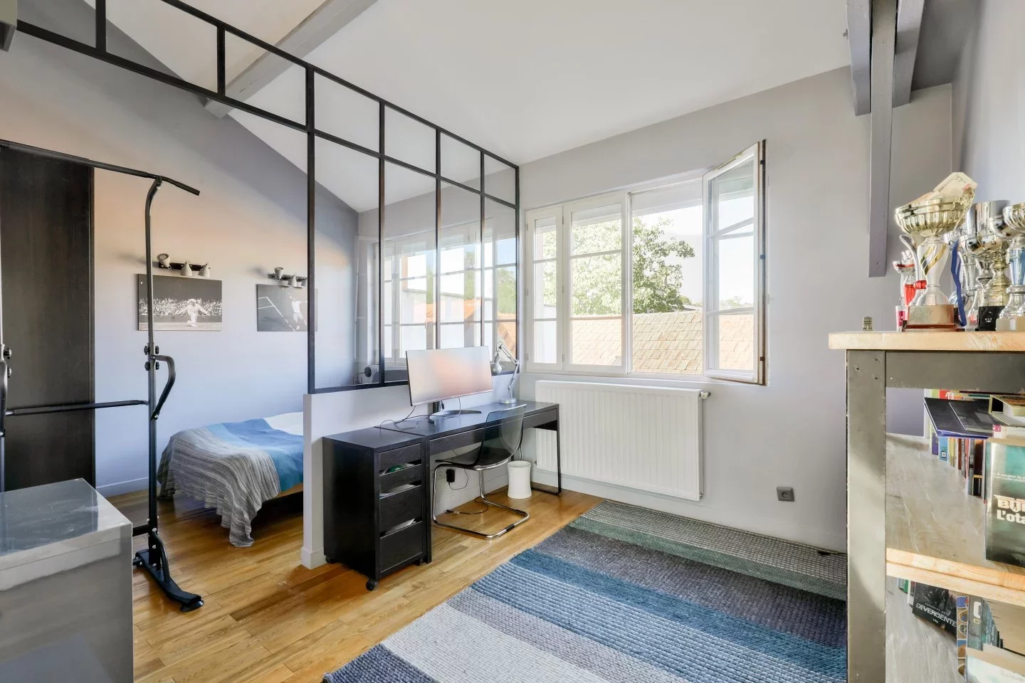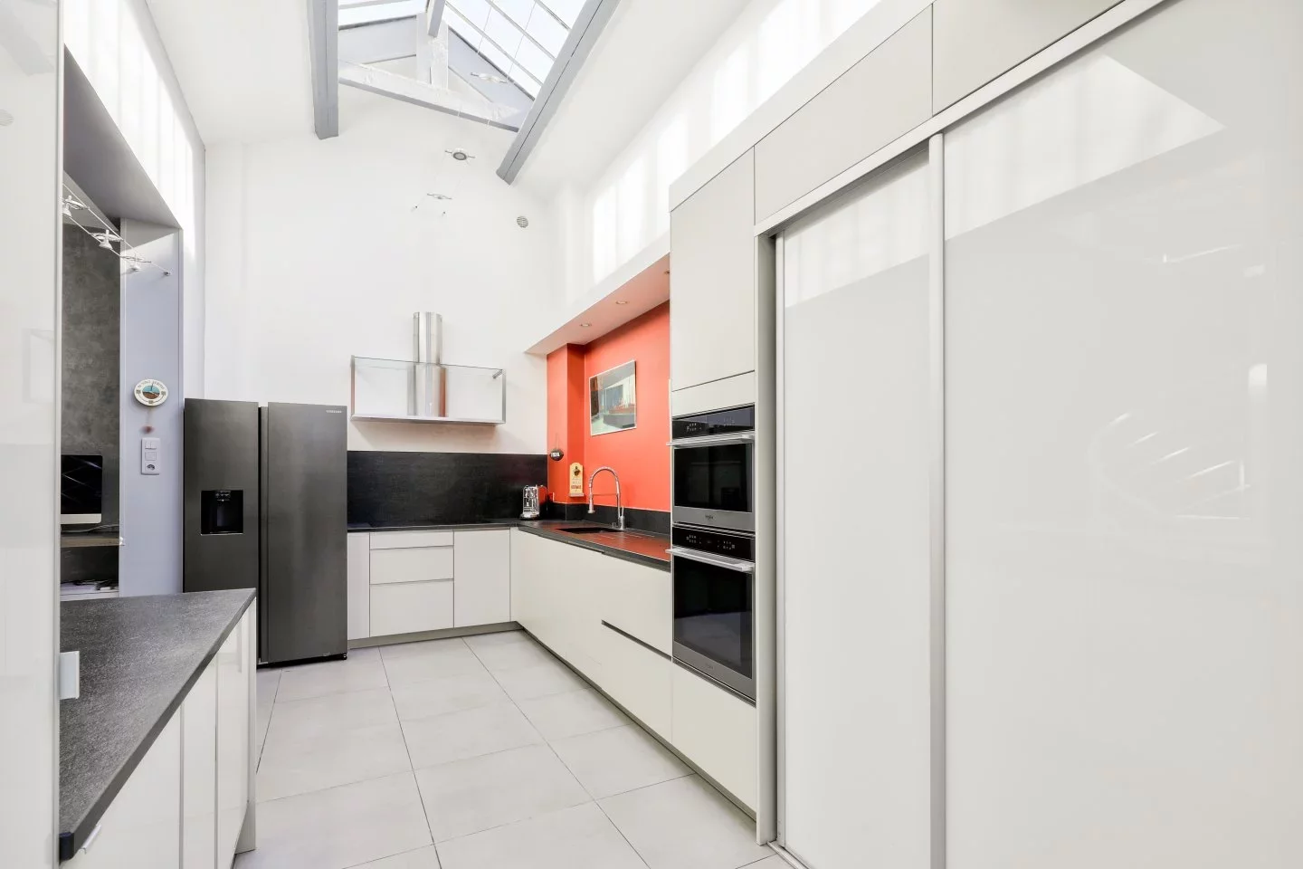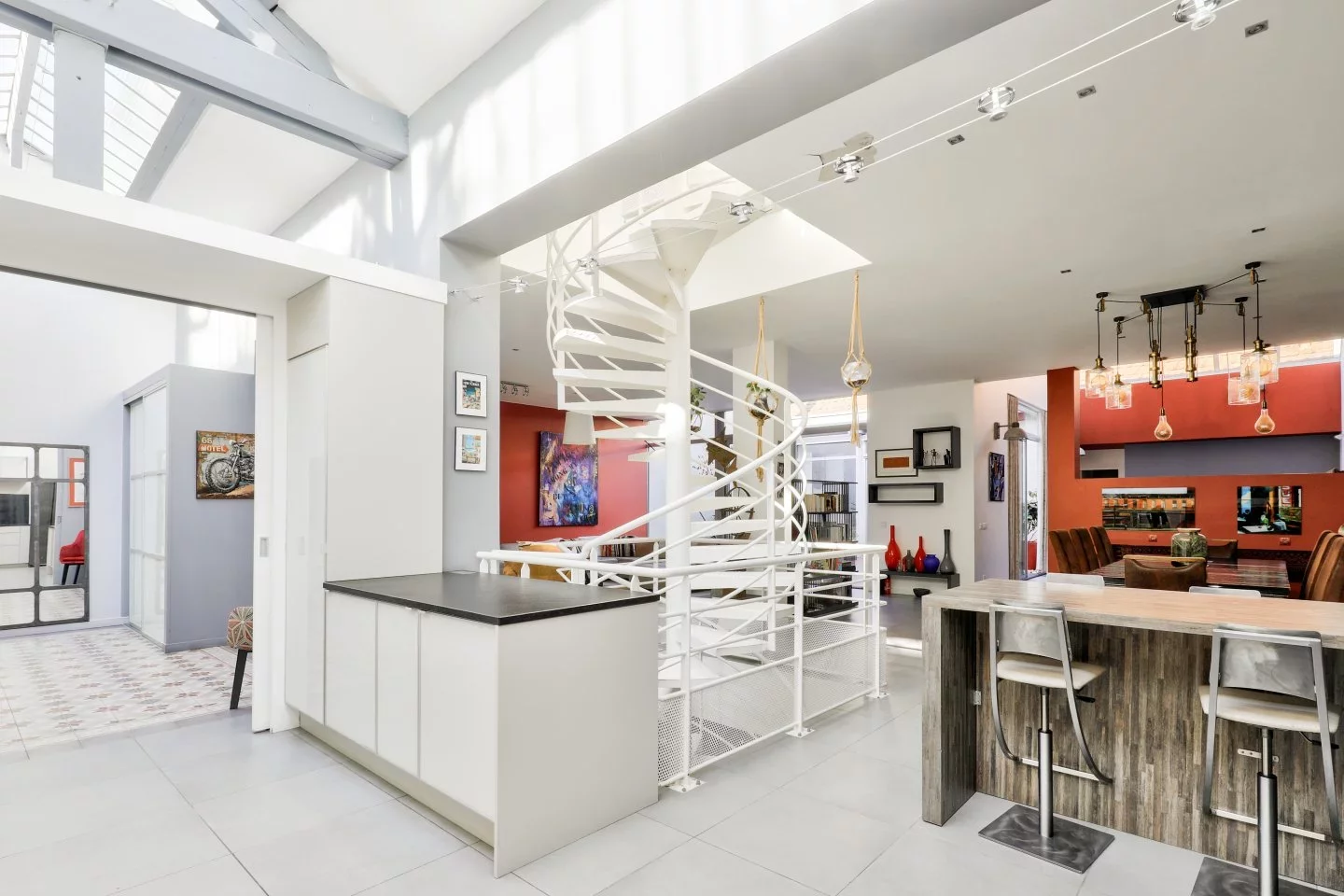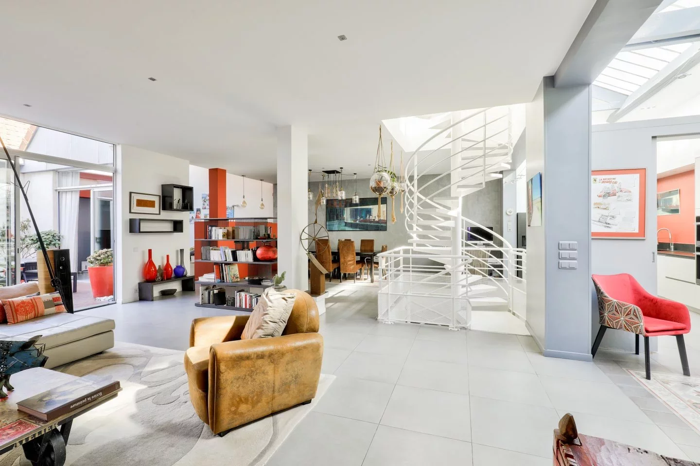 À proximité immédiate des transports, des commerces et des établissements scolaires, ce loft confidentiel de 238m², au calme absolu, séduit par ses volumes remarquables organisés autour d’un patio central de 37m², véritable cœur de vie à l’abri des regards.
