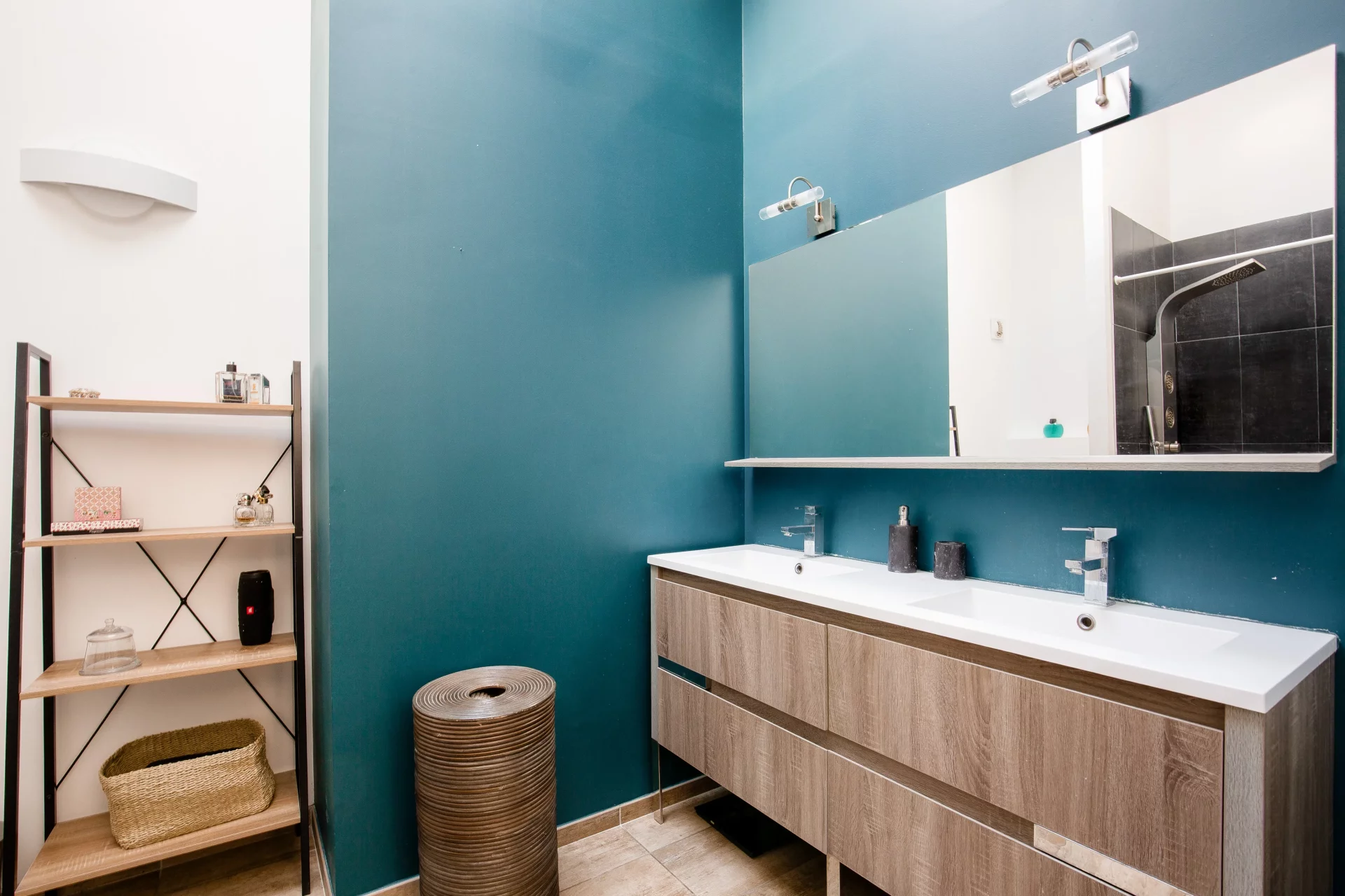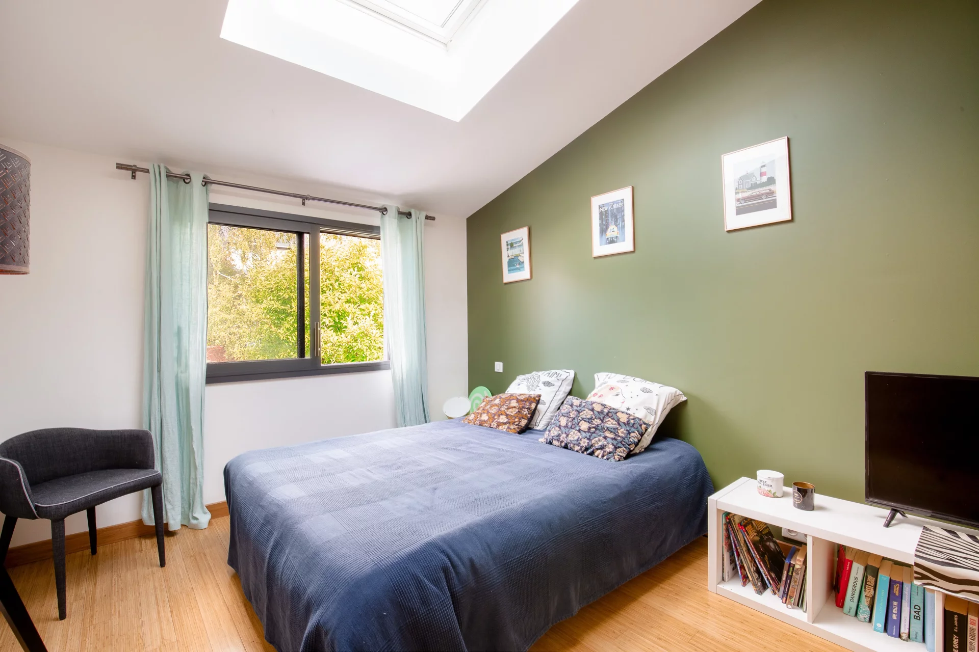 À l’étage, vous trouverez deux chambres avec rangements et belle hauteur sous plafond, une salle de bains, ainsi qu’une suite parentale comprenant un vaste dressing et une salle de douche.