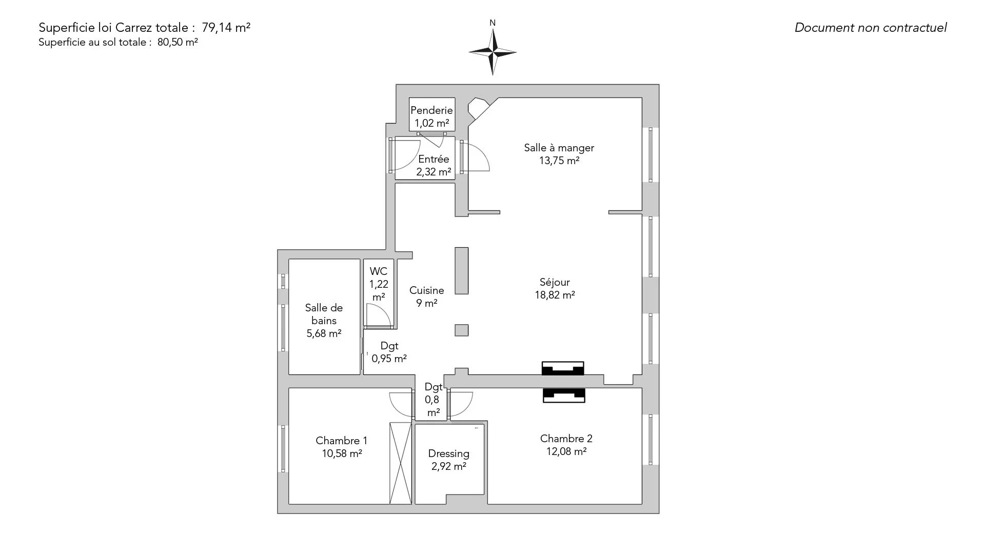 - Habitable : 79,14 m² Total : 80,50 m²