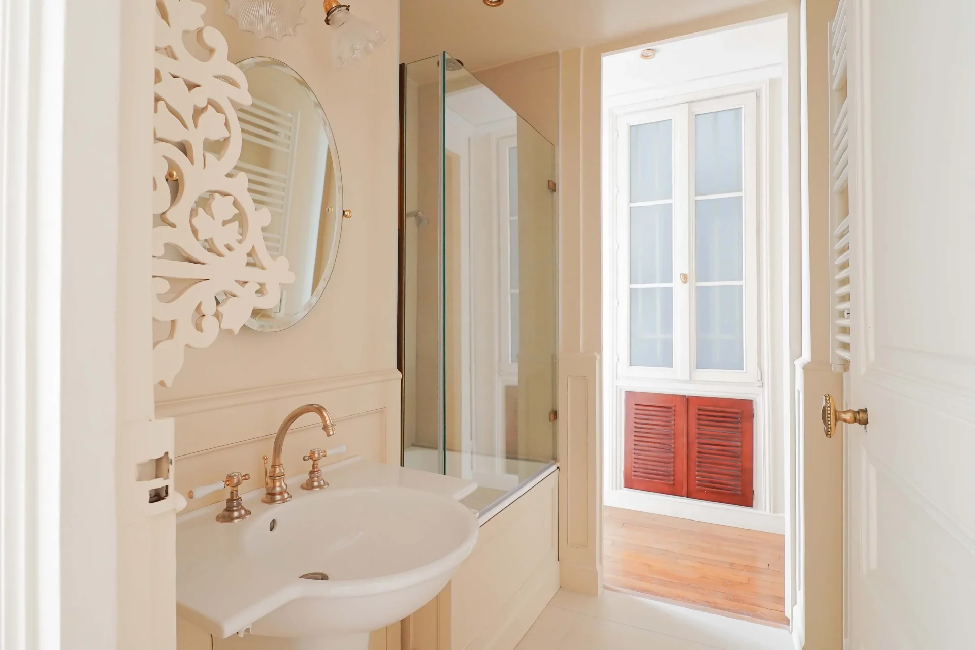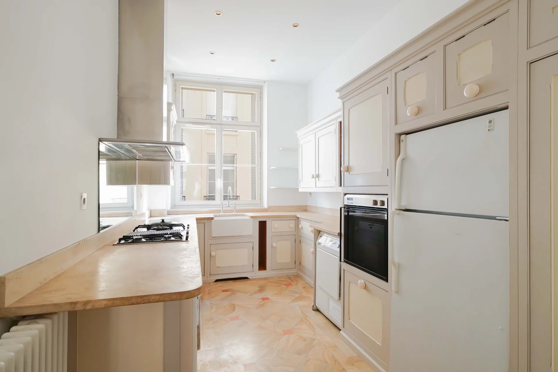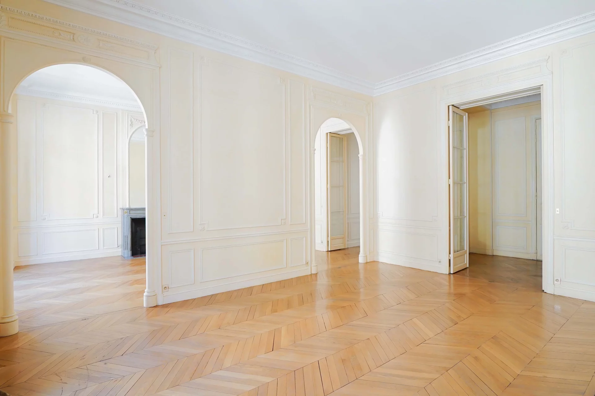 Au deuxième étage d’un élégant immeuble haussmannien par ascenseur avec service de conciergerie, cet appartement de caractère de 155,25m² loi Carrez offre tout le charme de l’ancien: parquet point de Hongrie, moulures, cheminées et belle hauteur sous plafond.