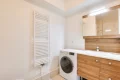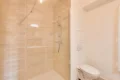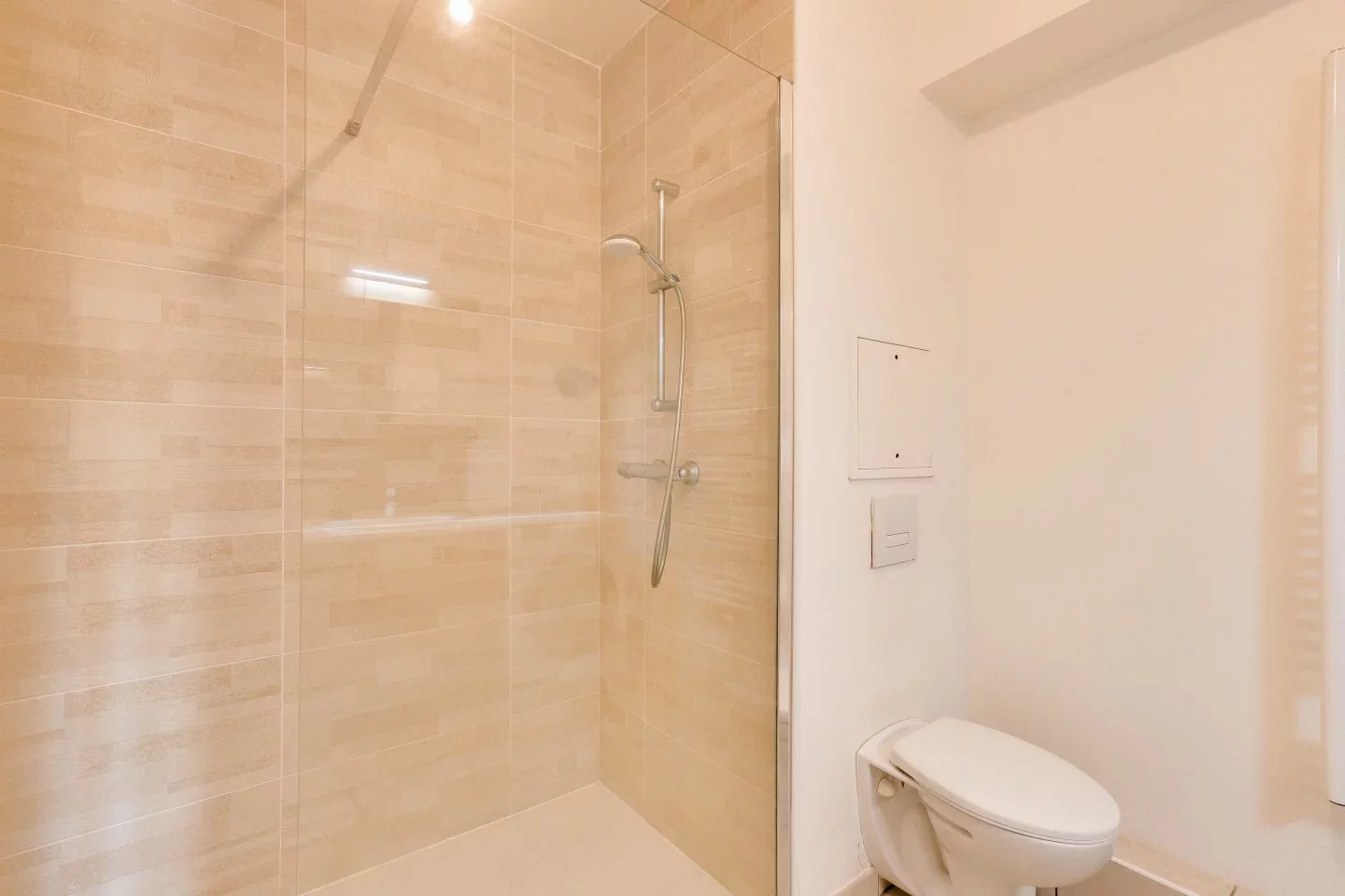 L’entrée mène à un séjour lumineux, bénéficiant de deux grandes fenêtres, ainsi qu’à un coin cuisine entièrement équipée et une salle de douche avec toilettes et espace machine à laver.