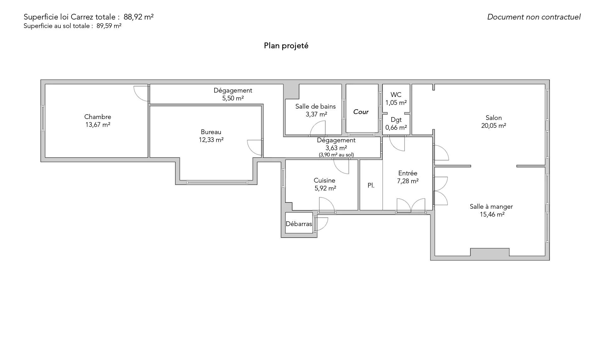 | 1x Salon | 20.05 m² | Étage : 5ème |
