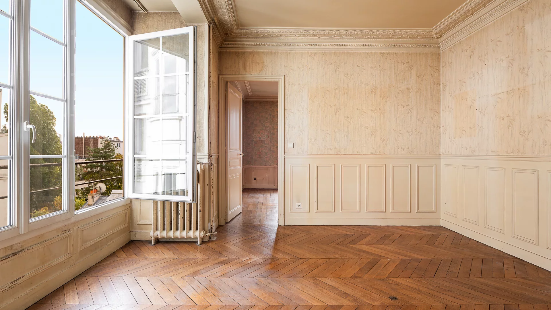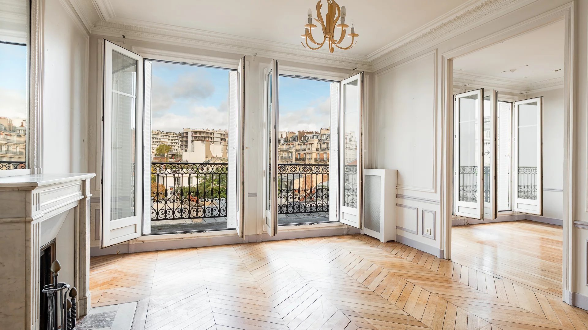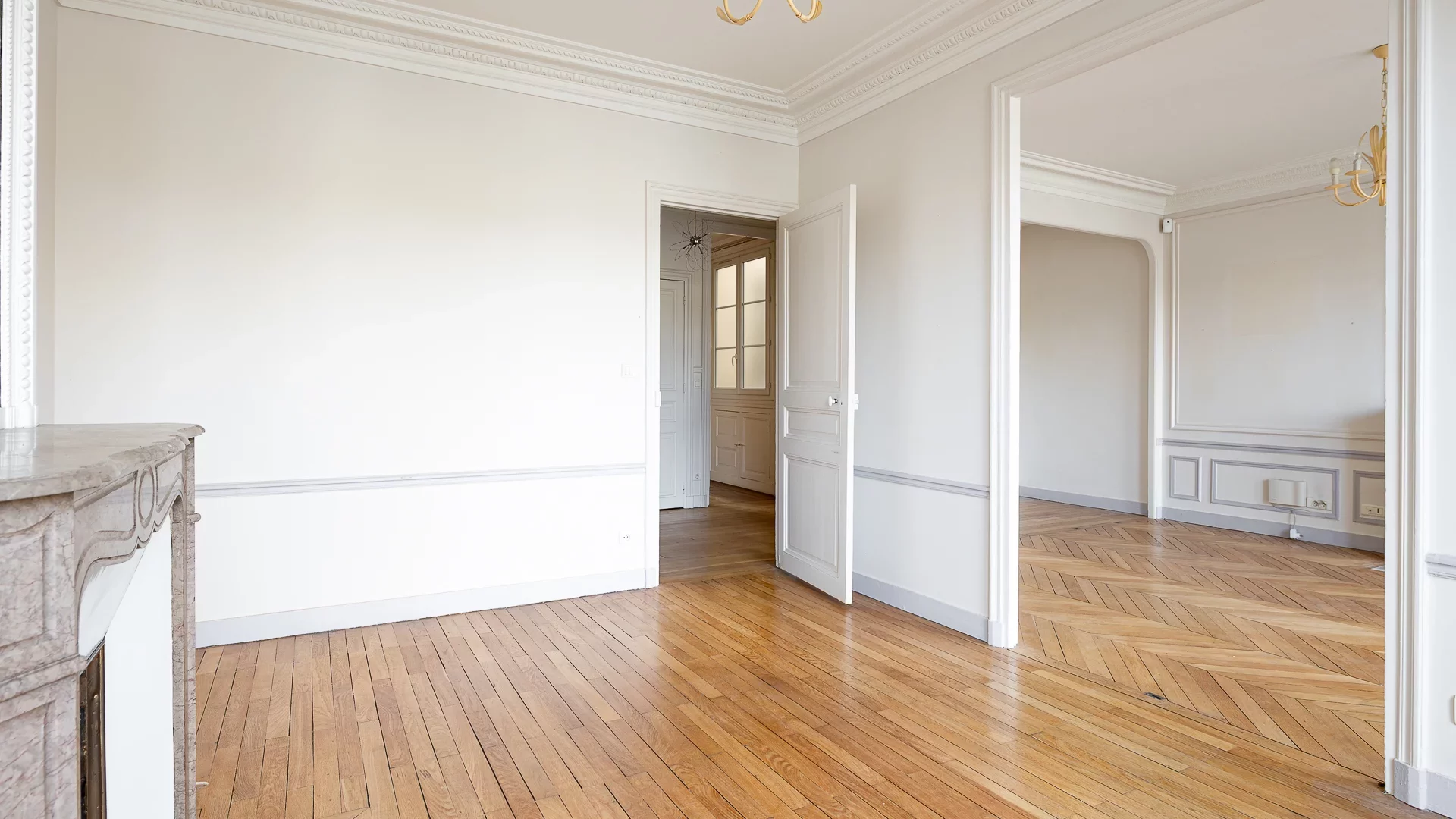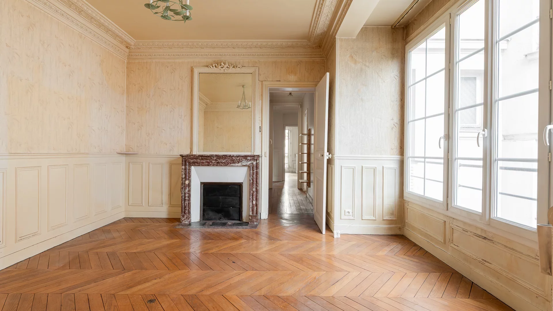 Situé au cinquième étage par ascenseur d'un bel immeuble haussmannien construit en 1870, cet élégant appartement traversant de 88,92m² loi Carrez a conservé tout le charme de l'ancien avec son parquet et ses cheminées.
