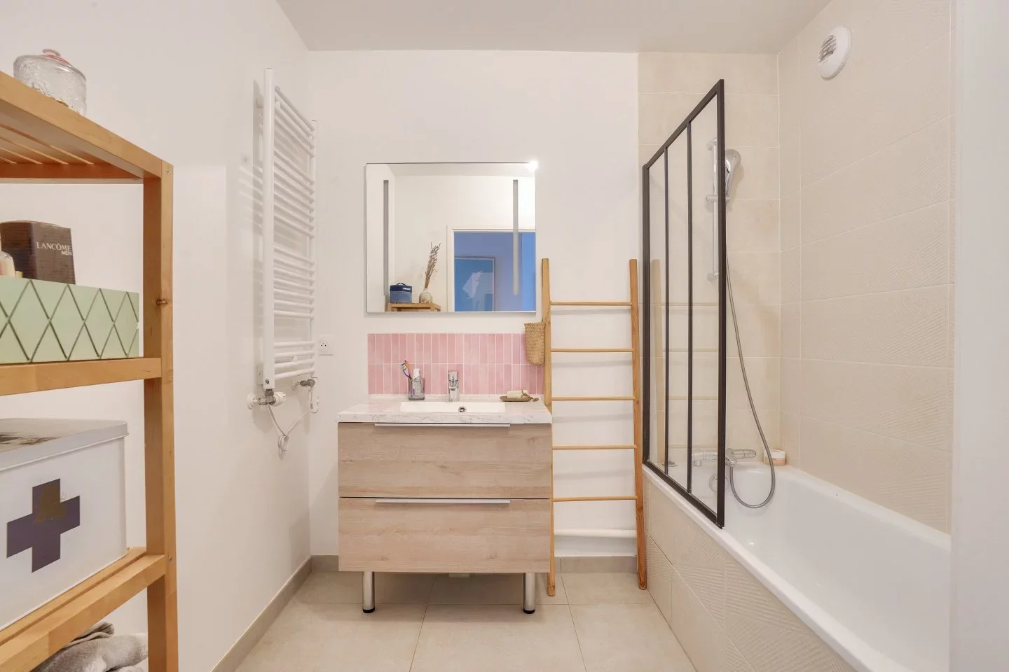 L’espace nuit dispose de deux chambres d’environ 13 m² avec placards ainsi que d’une salle de bains.