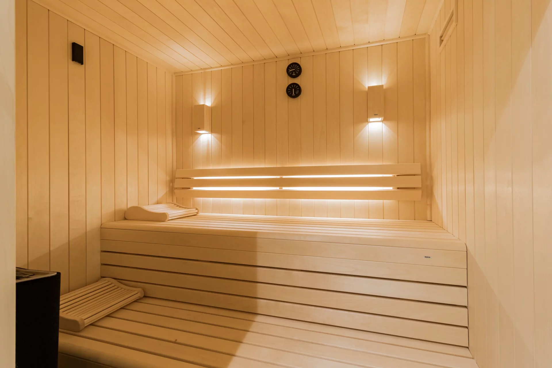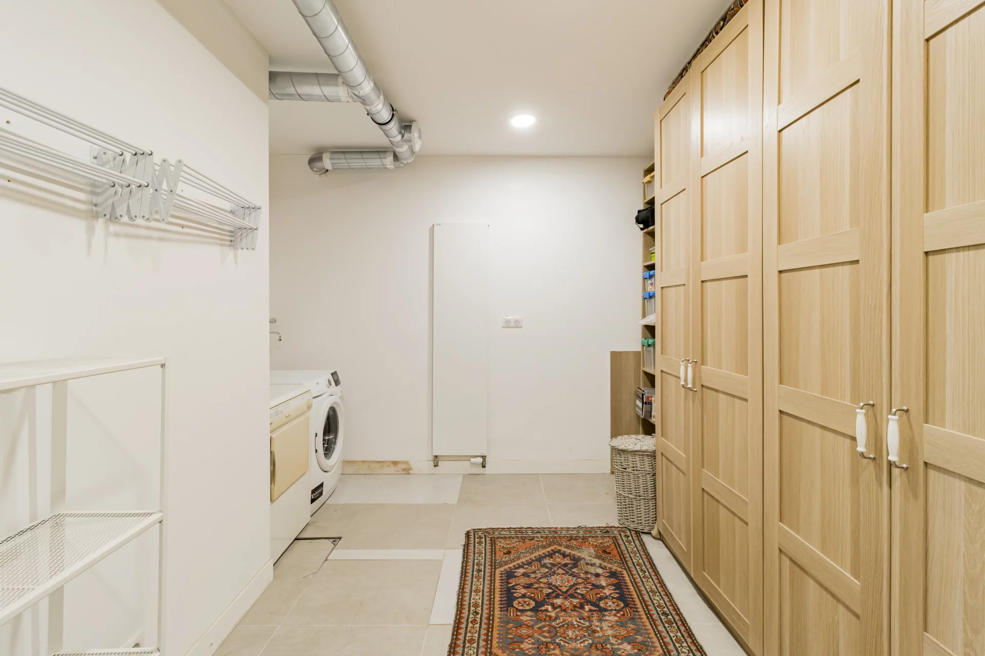 Enfin, le sous-sol, accessible lui aussi par l’ascenseur, réserve de belles surprises: un home cinéma de 20m², un espace bien-être avec sauna et vaste salle de douche, une buanderie, une cave à vin et des toilettes.