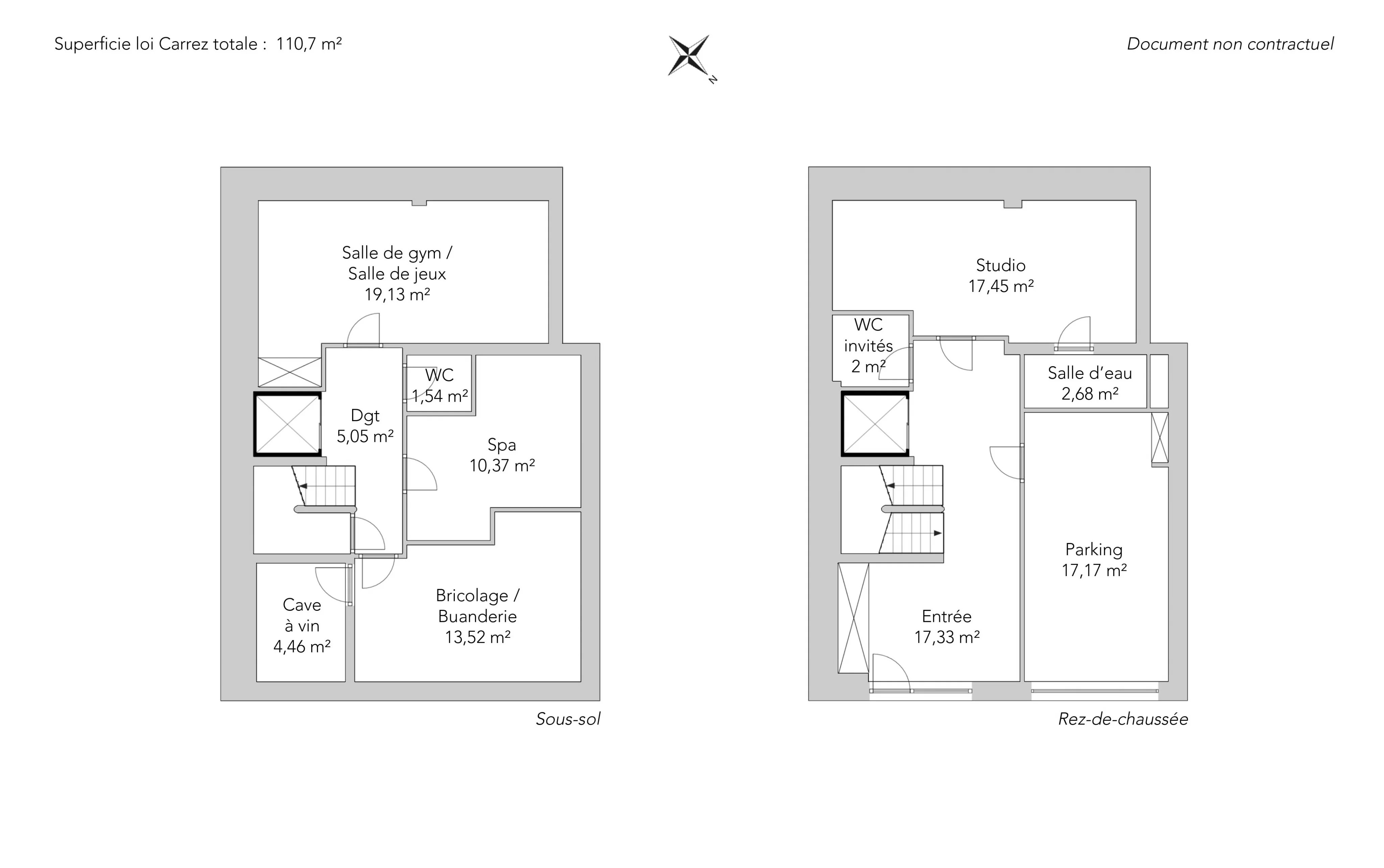 | 1x Dégagement | 3.45 m² | Étage : Sous-sol |