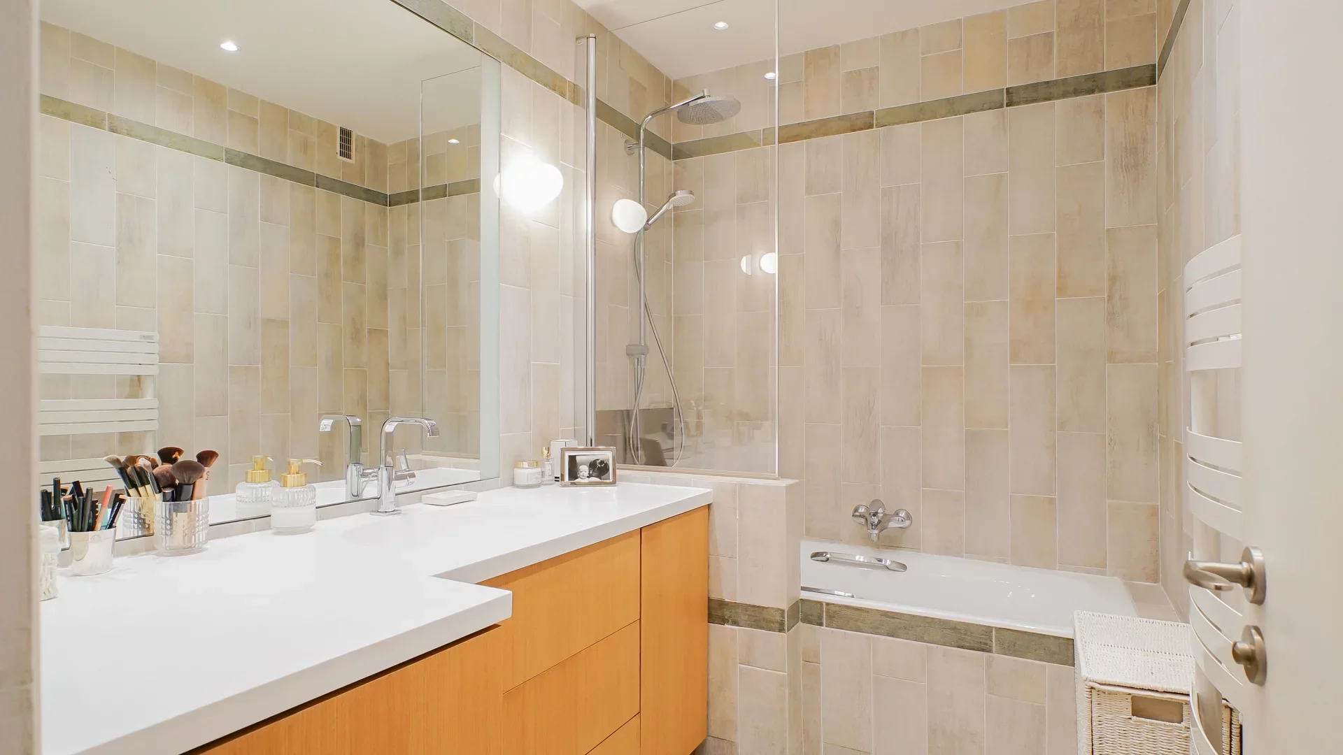 Baigné de lumière grâce à sa double exposition est-ouest et offrant de belles vues dégagées sur la verdure, il bénéficie d’un agencement fonctionnel et équilibré.