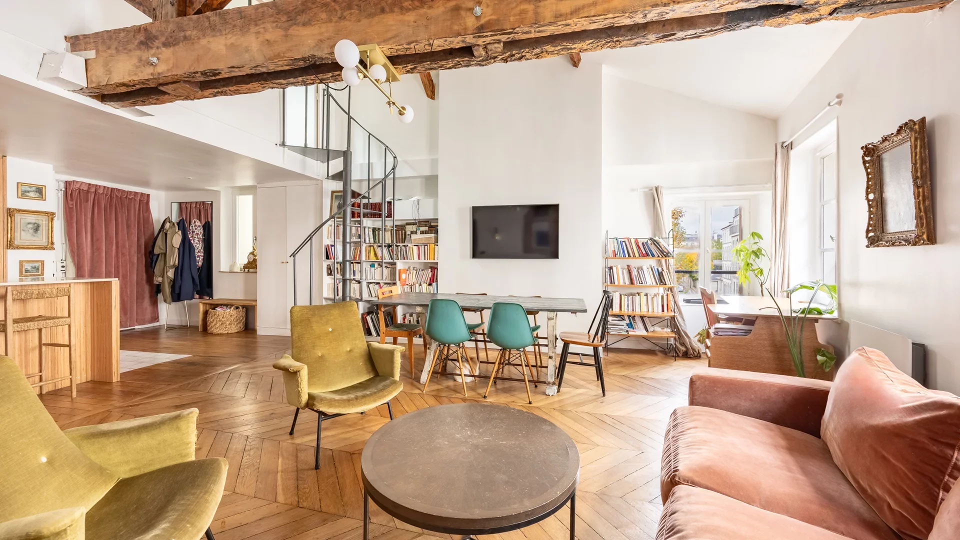 Au calme absolu cet appartement bénéficie du charme de l'ancien : poutres apparentes, parquet en point de Hongrie, belle hauteur sous plafond. Gardien et local vélo.